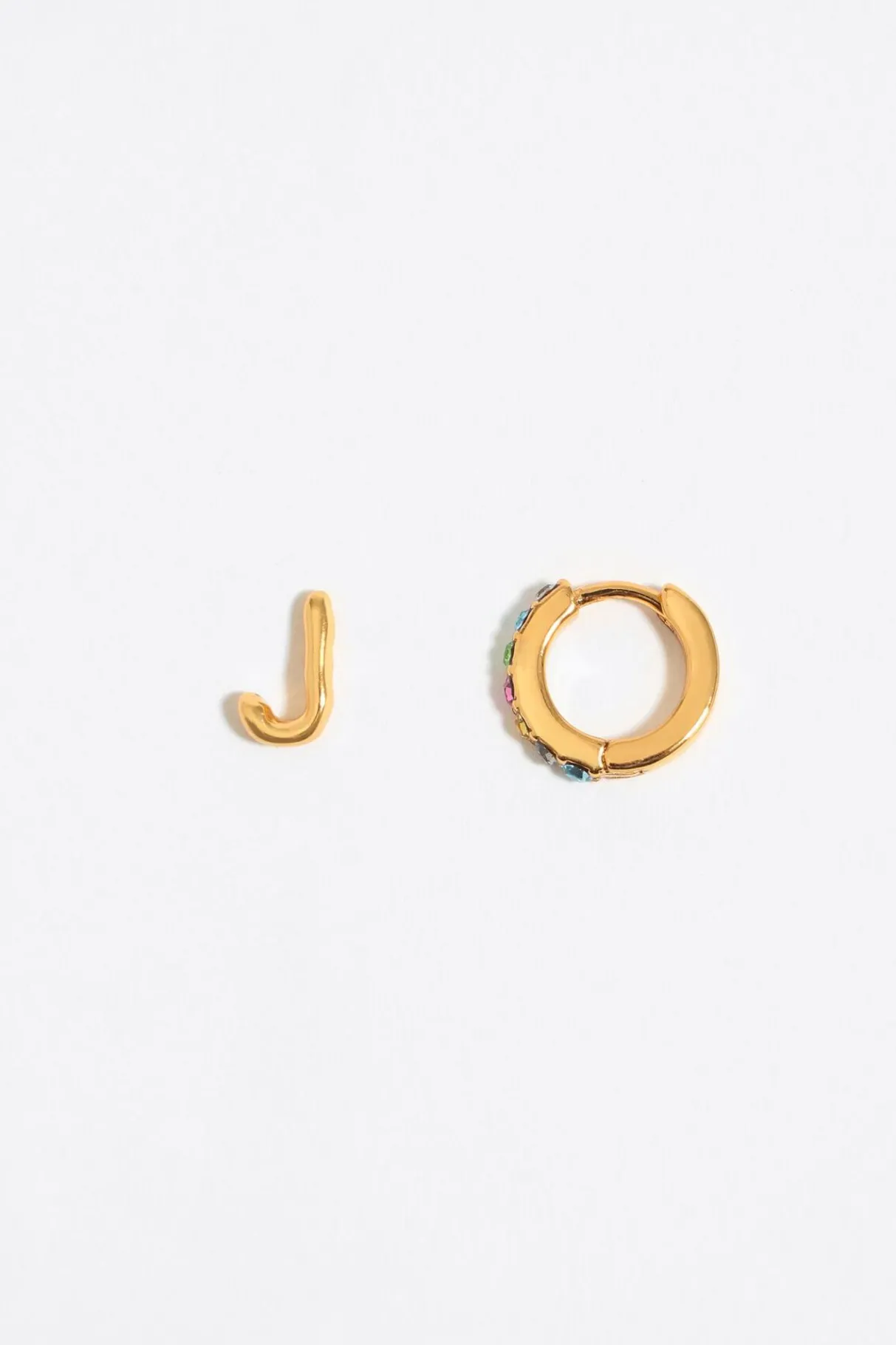 Mujer BIMBA Y LOLA Abecedario<Pendientes Letra J Y Aro Mini Cristales Multicolores