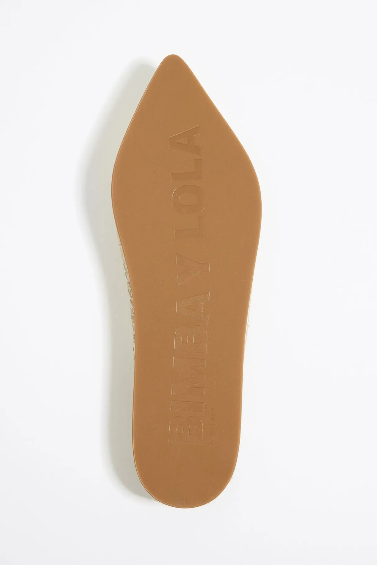 Bailarina De Piel En Color Oro Acabada En Punta. Modelo Destalonado Con CordÓN De Piel Para Enlazar En El Tobillo. Etiqueta Con Logo Bordado En Plantilla Y Piso De Yute Con Suela Personalizada.