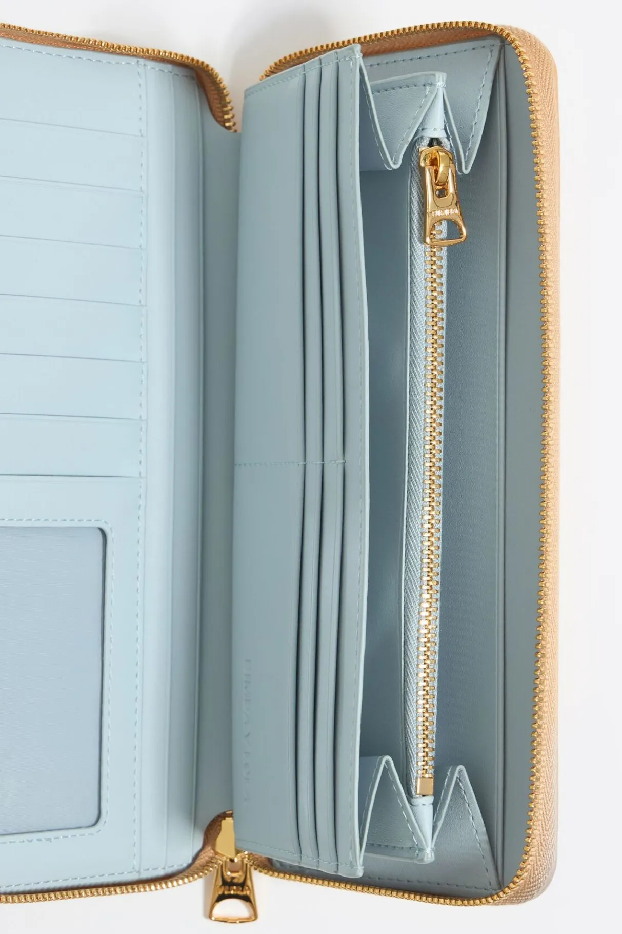 Billetera Horizontal Con Grabado De Cocodrilo En Color Arena. Modelo Con Cierre De Cremallera E Interior Con Monedero Y Tarjetero. Exterior Personalizado Con Logo MetÁLico.
