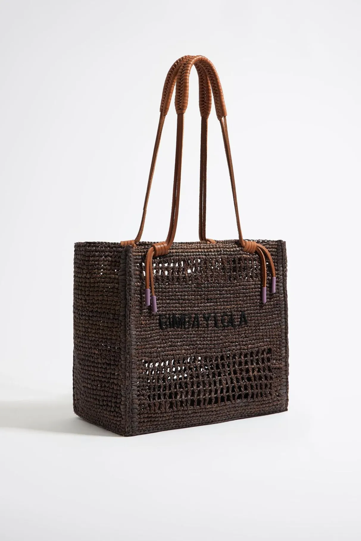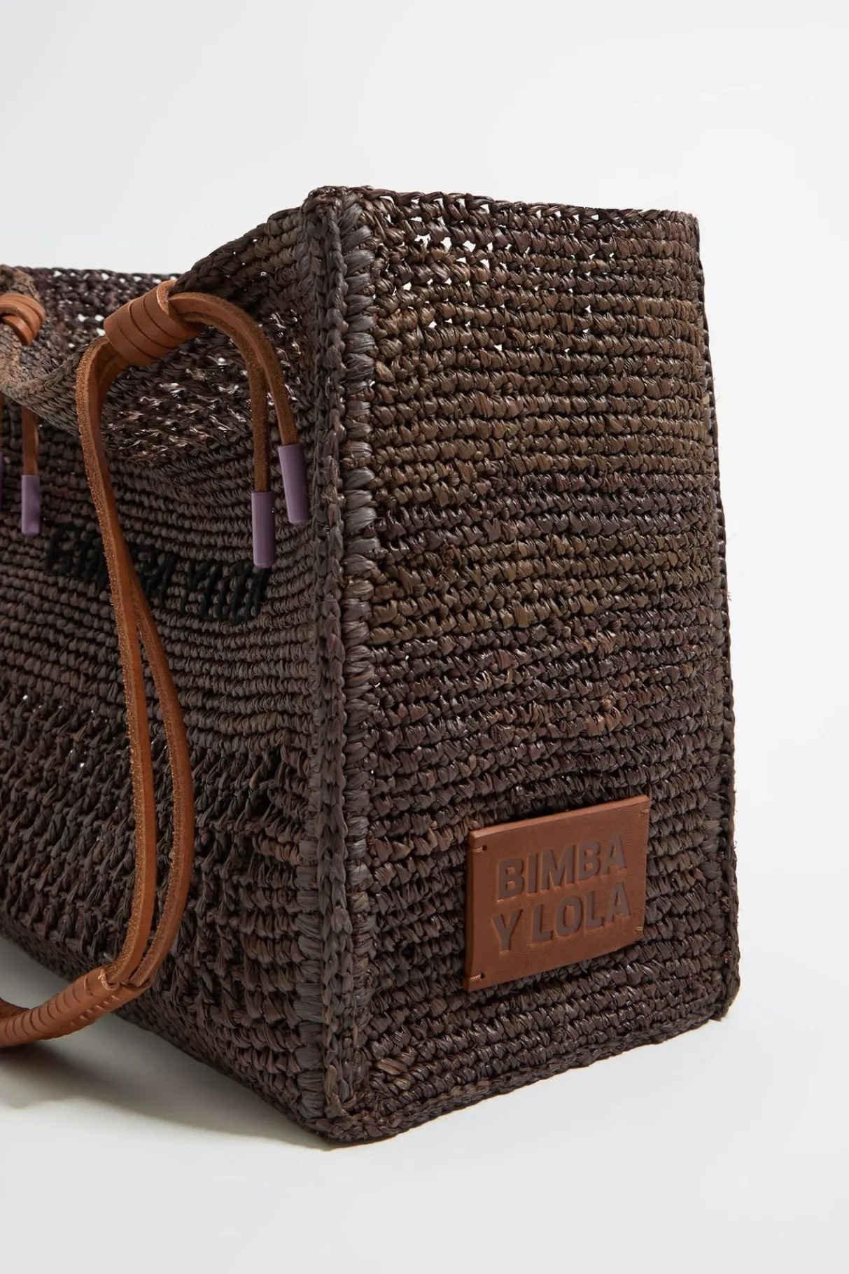 Mujer BIMBA Y LOLA Bolsos De Hombro<Bolso Tote Grande Rafia Chocolate
