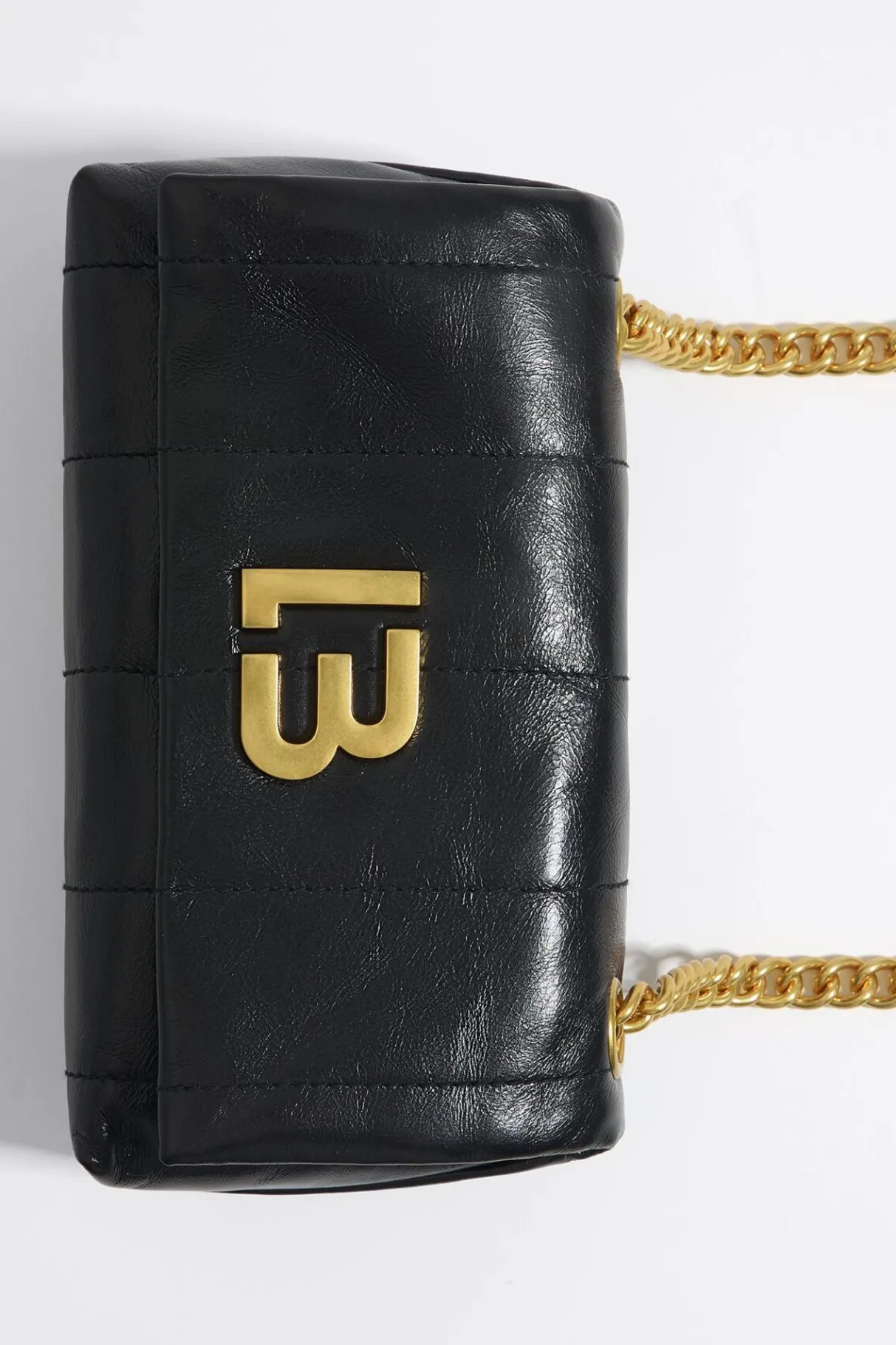 Bolso Bandolera De Piel En Color Negro. Modelo De TamaÑO PequeÑO Con Cierre De Solapa Y Asa Bandolera De Piel Y De Cadena. Exterior Personalizado Con Logo Lb MetÁLico. Este Modelo Contiene 100% PoliÉSter Reciclado.