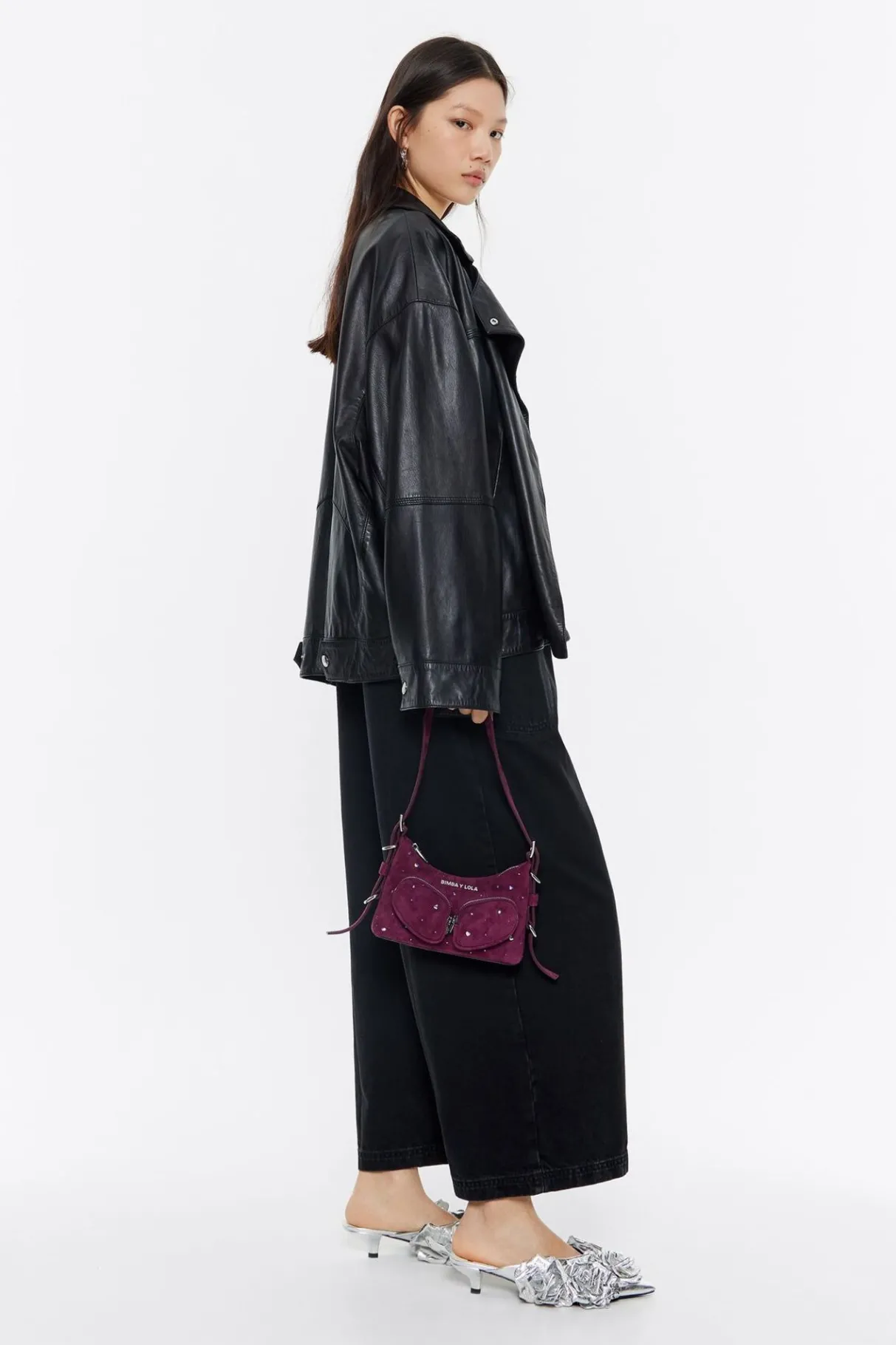 Mujer BIMBA Y LOLA Bolsos Pocket<Bolso Hobo Pocket Mini Piel Swarovski Berenjena