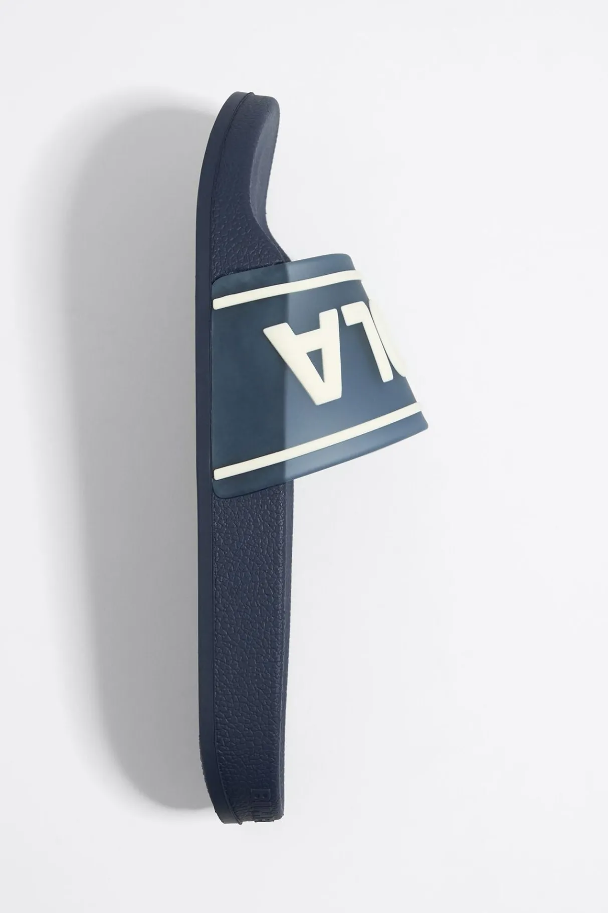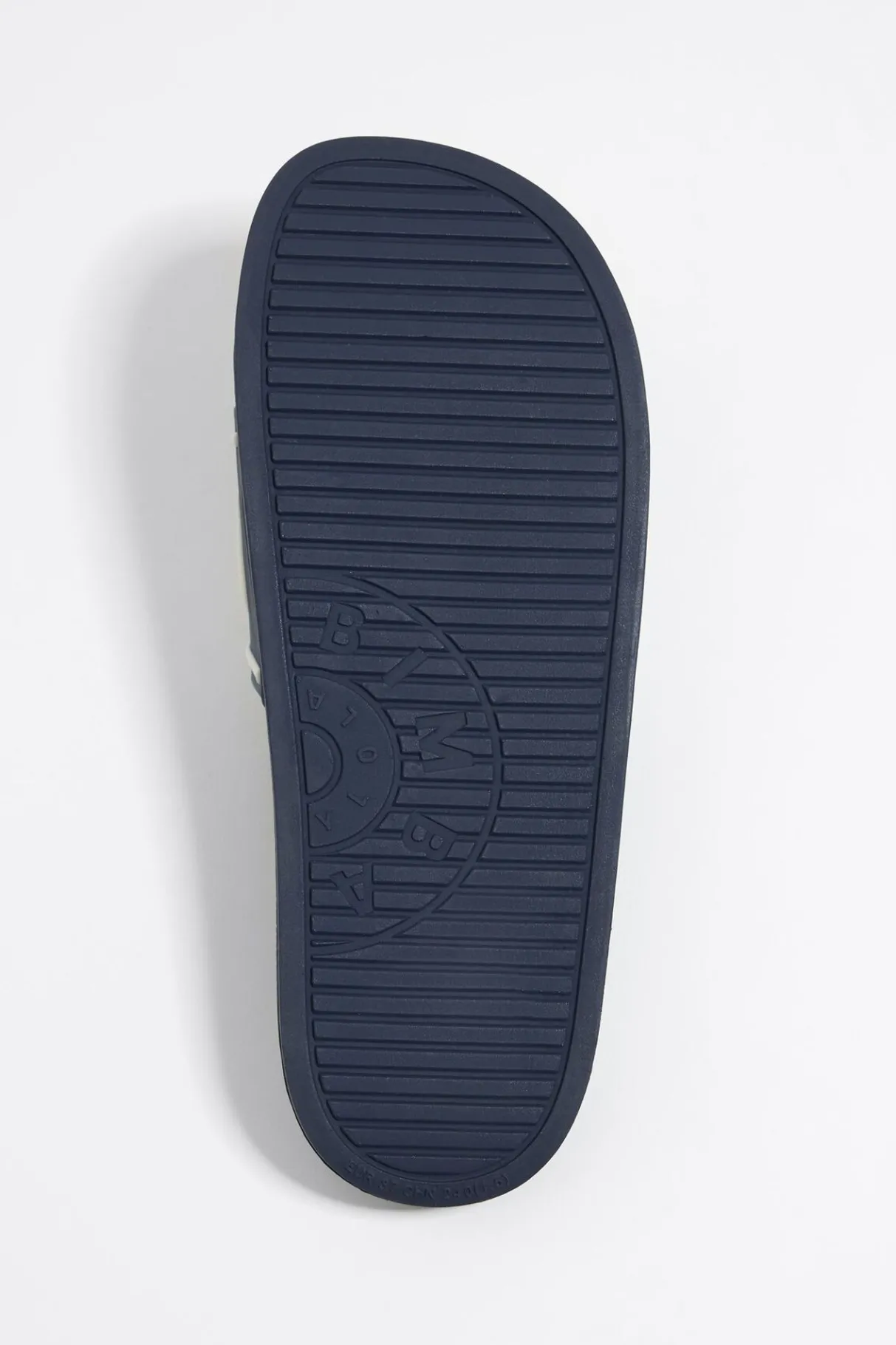 Chancla Tipo Pala Con Logo A Contraste En Color Azul Marino. Modelo Con Pala Logotipada Y Fondo Transparente. Suela Logotipada Con Acabado Dentado.