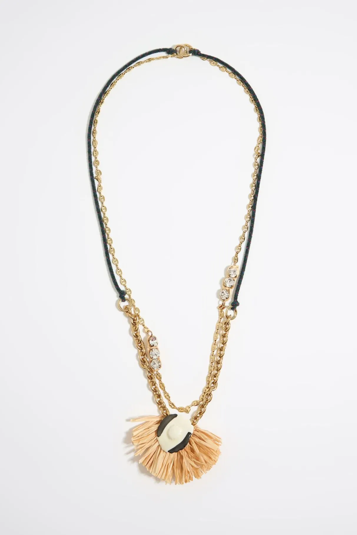 Collar Doble Con Colgante En Forma De Flor De CerÁMica Y Rafia. Modelo Con Cierre De MosquetÓN.