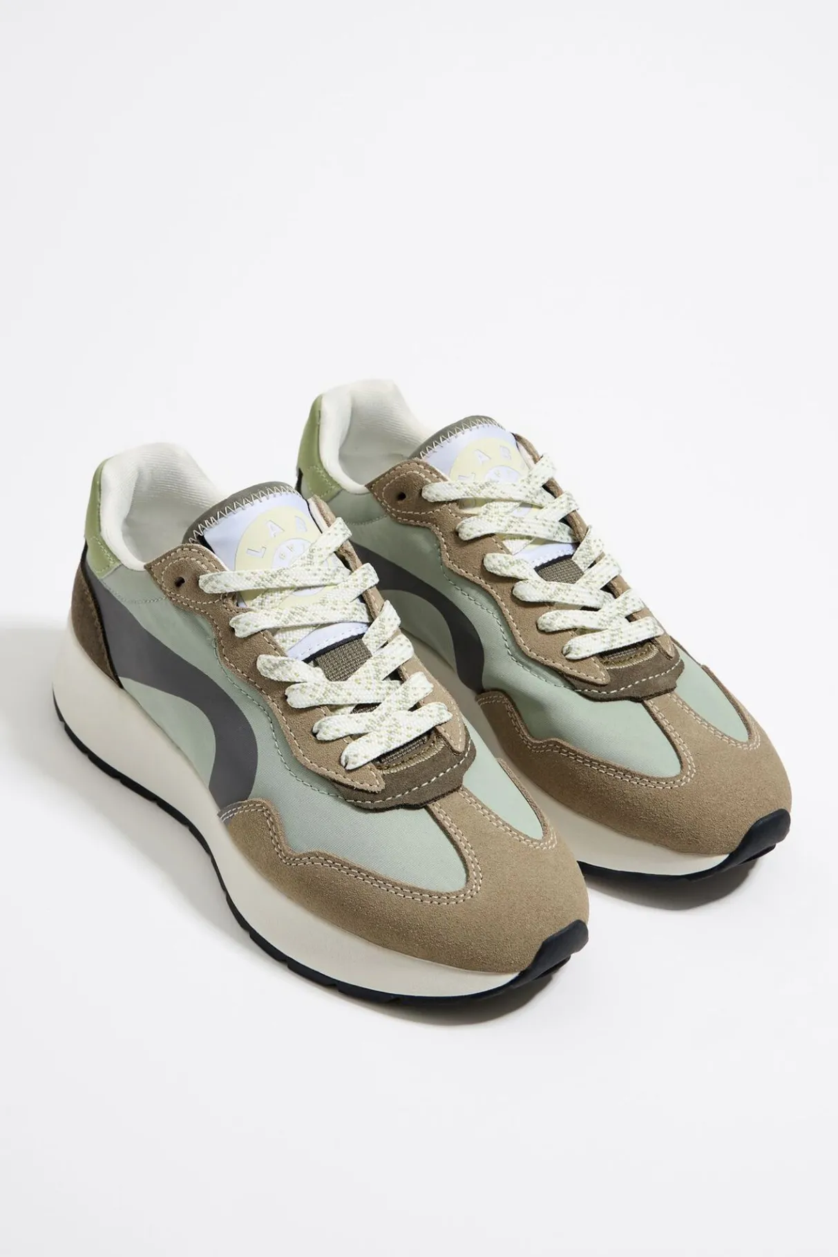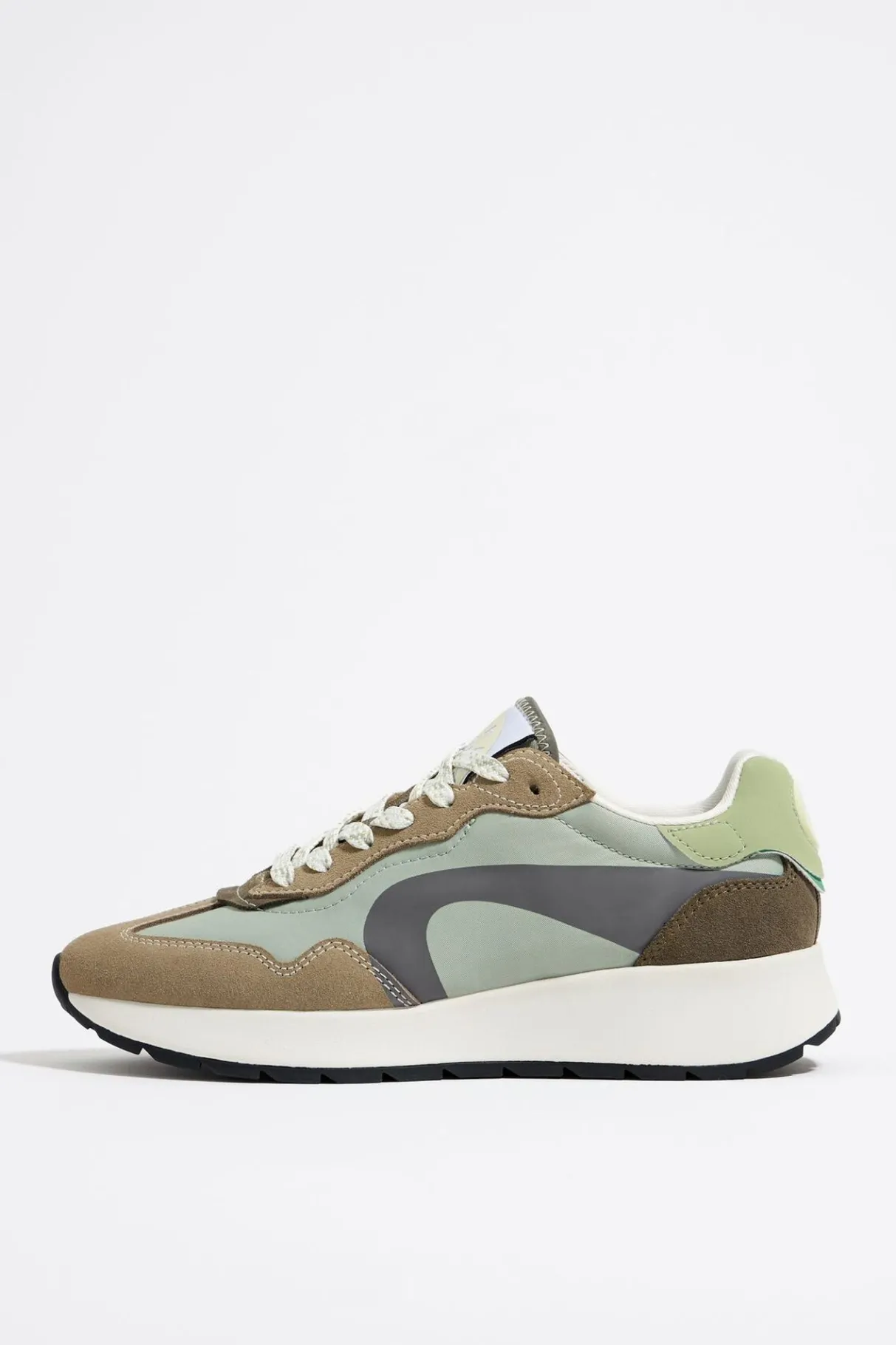 Deportiva Lifestyle En Color Caqui. Modelo Confeccionado Con Piezas En Serraje Y Tejidos TÉCnicos. Logo Lateral Con Glitter Y LengÜEta Con Logo Chimo. Parte Trasera Con Logo En El TalÓN. Piso Bicolor Personalizado Con Acabado Dentado.
