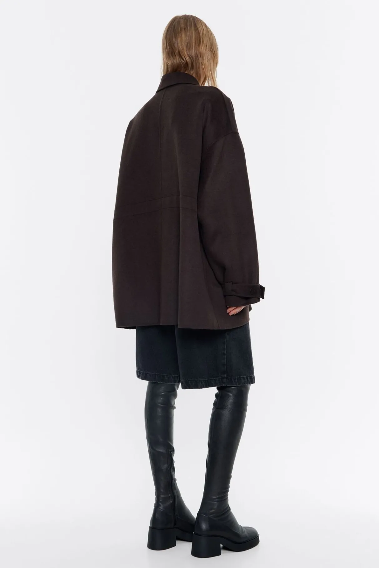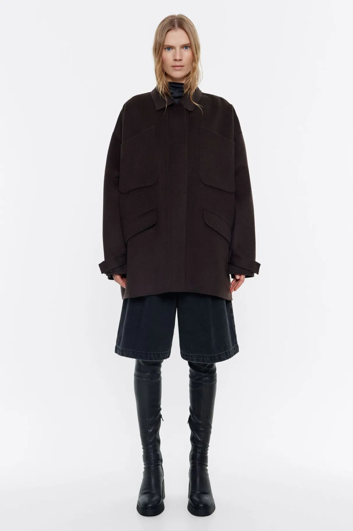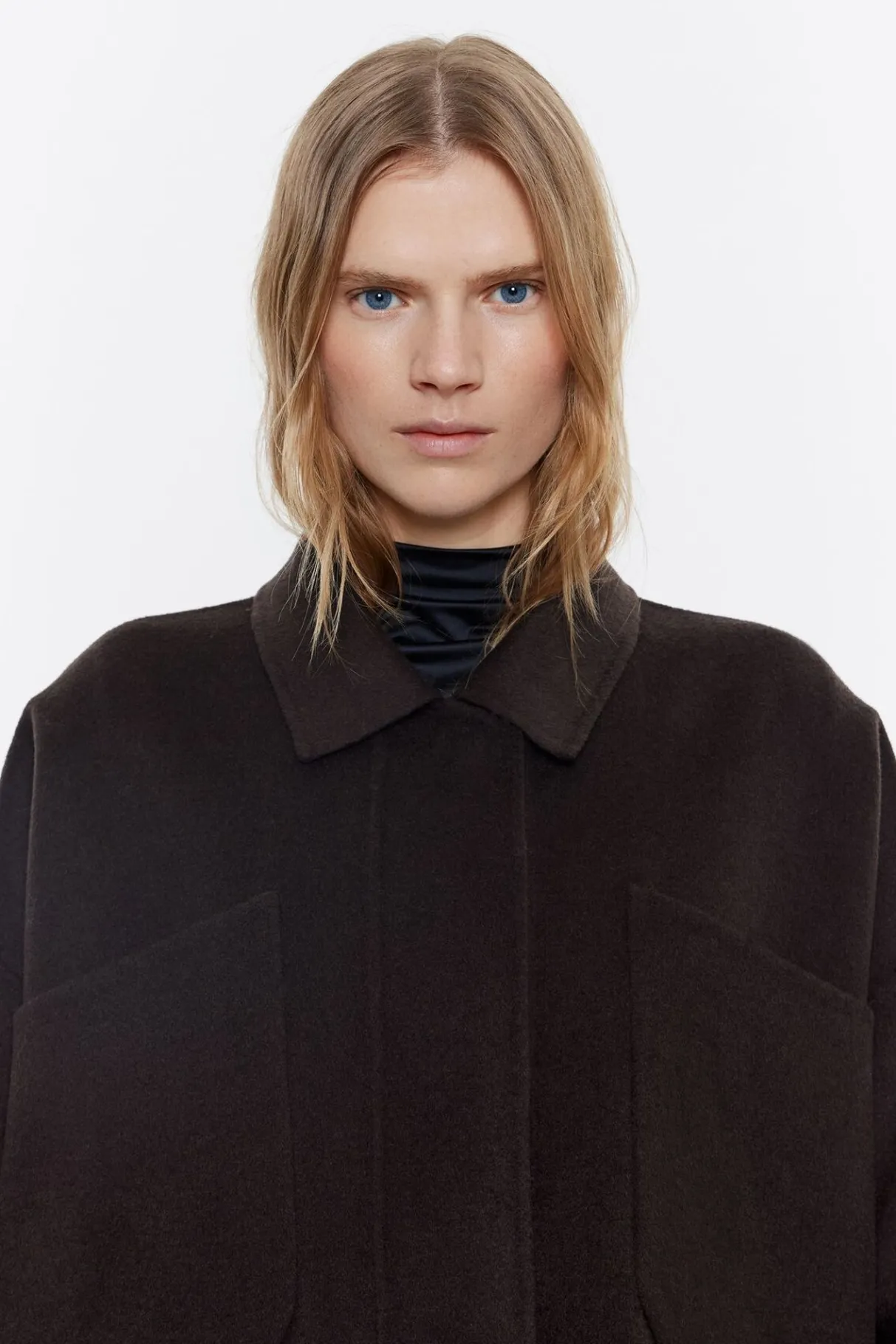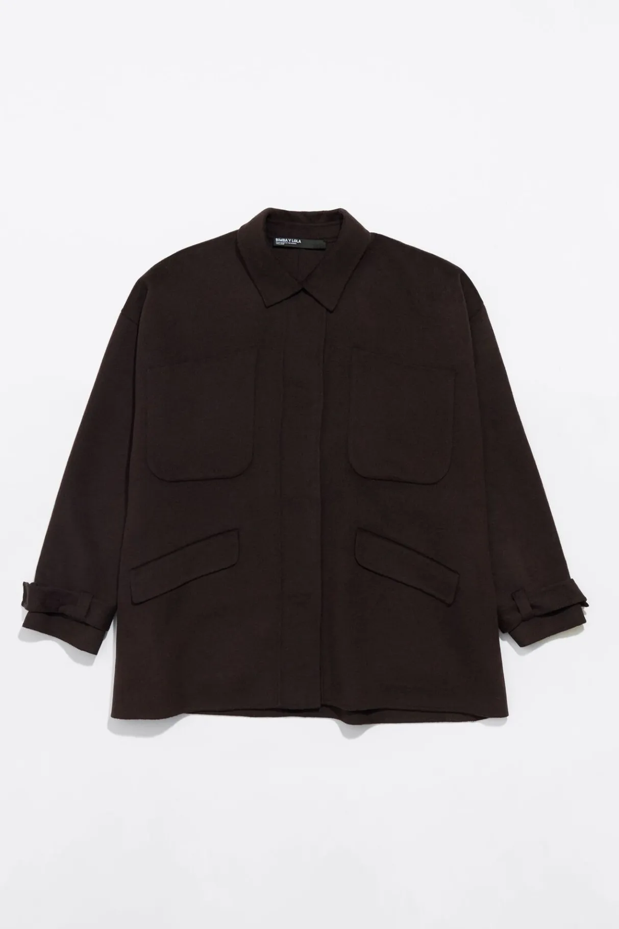 ChaquetÓN Doble Faz En Mezcla De Lana En Color MarrÓN. Modelo Con Cuello Camisero, Manga Larga Con Trabilla Ajustable En PuÑO Y Cierre Frontal Con Botonadura De PresiÓN. Bolsillos Frontales Con Tapeta.