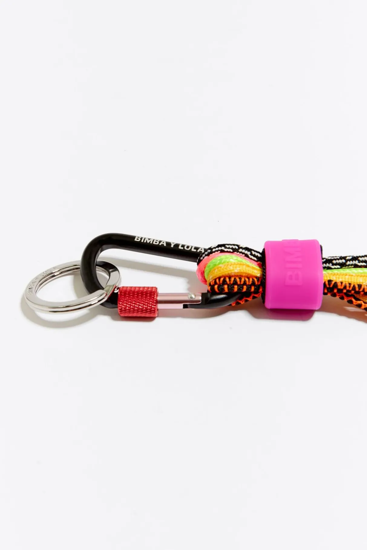Llavero Multicolor De Cuerdas Y Dados Con Las Letras Bimba. Modelo Con MosquetÓN Negro Y Anilla Para Llaves Plateada.