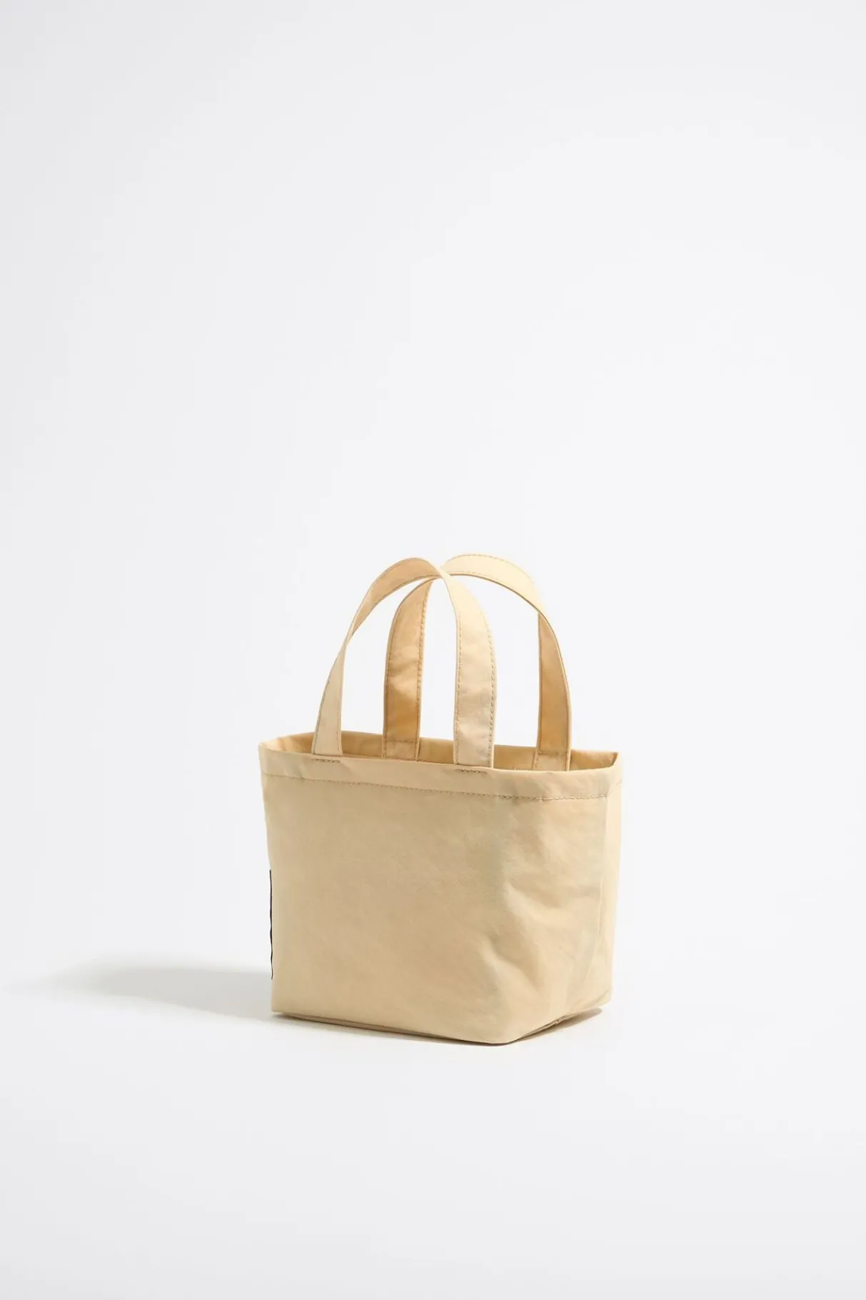 Bolso Shopper De Nylon En Color Vainilla. Modelo De TamaÑO Mini Con Cierre De Cremallera Y Bolsillo Interior. Exterior Personalizado Con Logo Bordado.