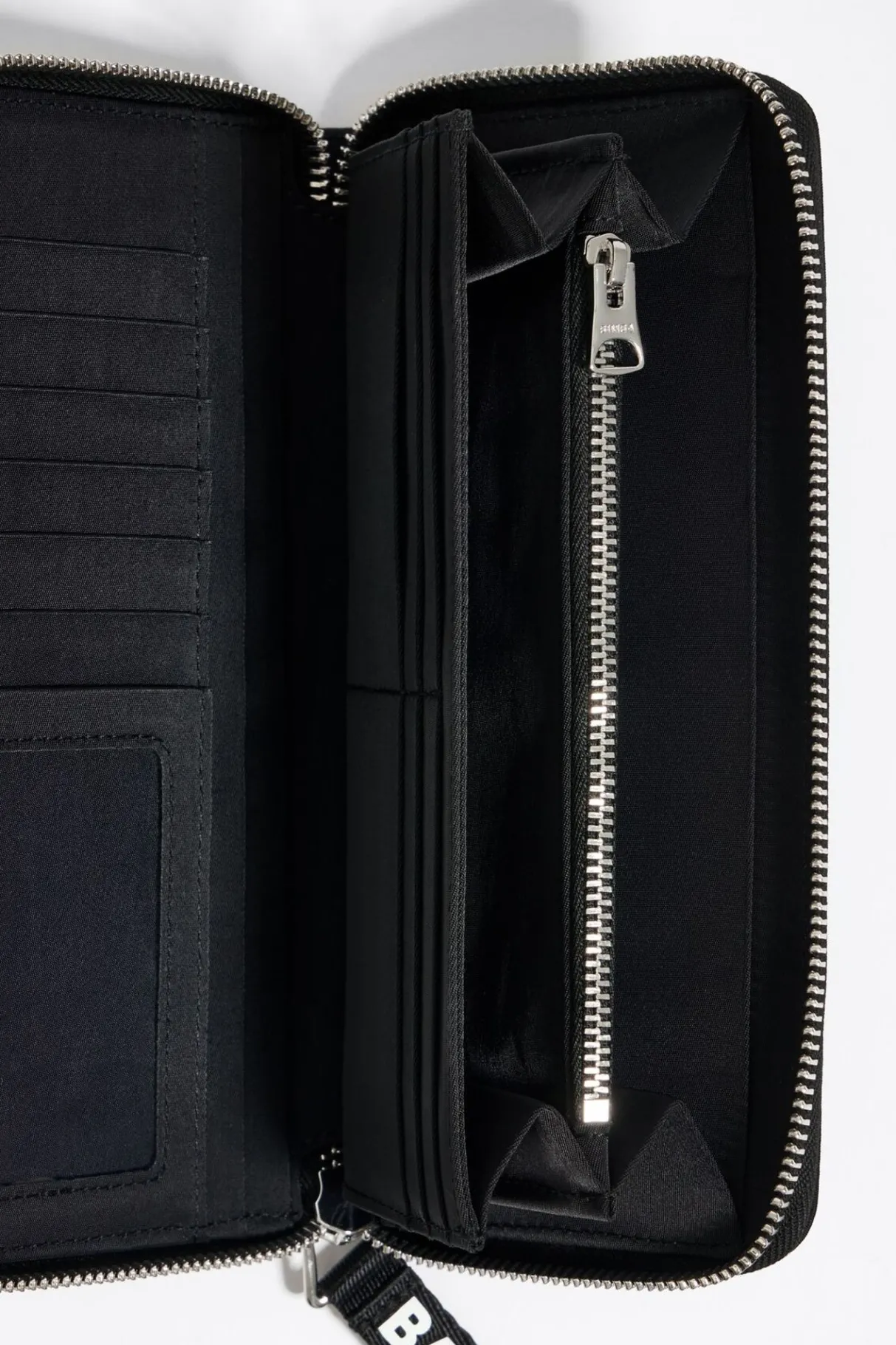 Billetera De Nylon En Color Negro. Modelo En Forma Horizontal, Con Cierre De Cremallera Y Asa En Tejido Logotipado. Interior Con Monedero Y Tarjetero. Exterior Personalizado Con Logo MetÁLico.