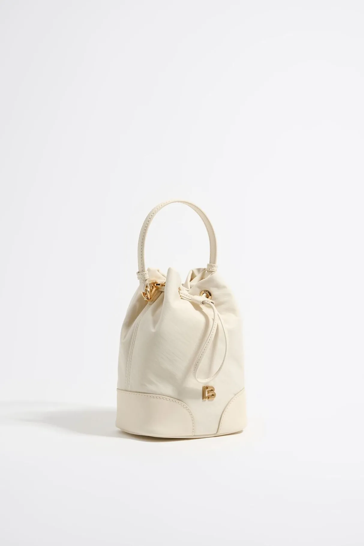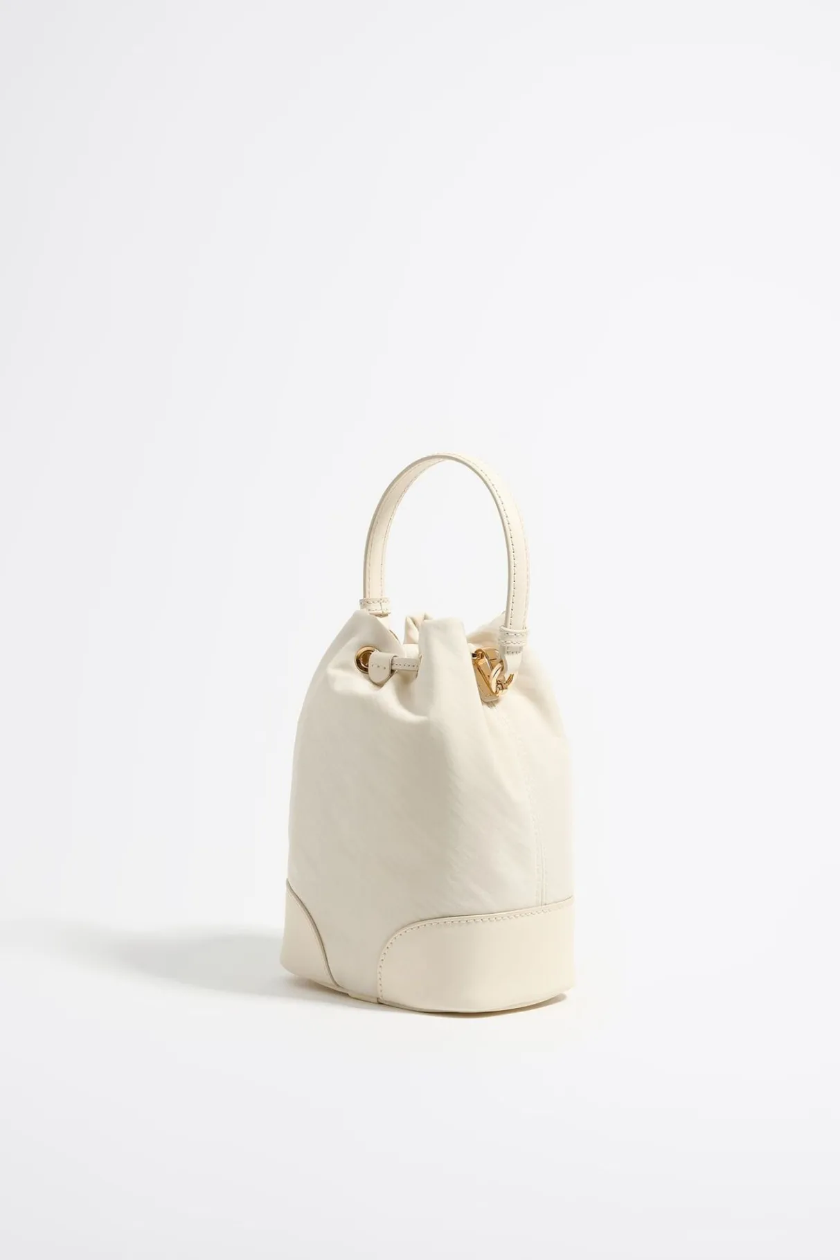 Bolso Saca De Nylon En Color Piedra. Modelo Con Cierre Ajustable De Piel, Asa De Piel Y Bolsillo Interior. Exterior Personalizado Con Logo Lb. Este Modelo Contiene 100% Poliamida Reciclada + 100% PoliÉSter Reciclado.