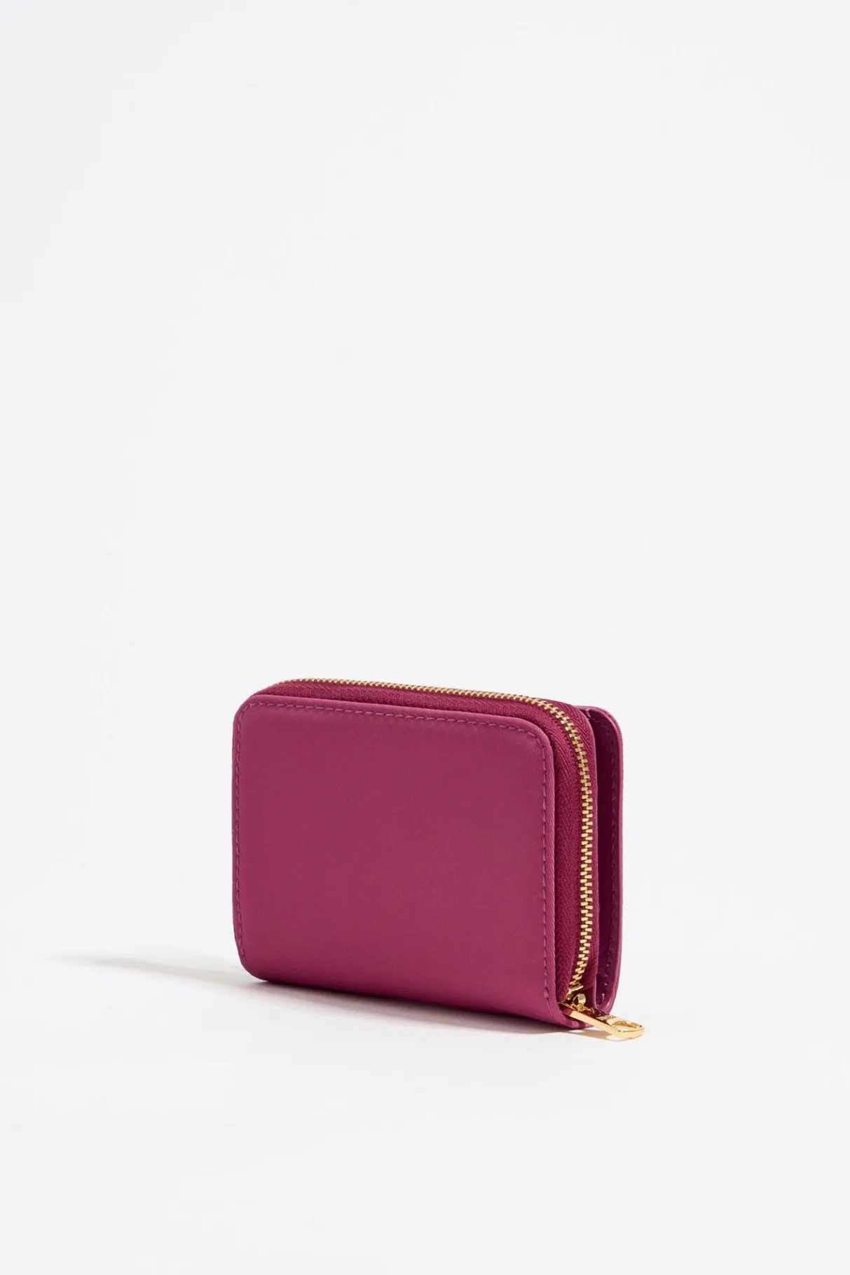 Cartera De Nylon En Color Rosa Oscuro. Modelo Con Solapa Frontal De Snap, Cierre De Cremallera Y Tarjetero Interior. Exterior Personalizado Con Logo MetÁLico.