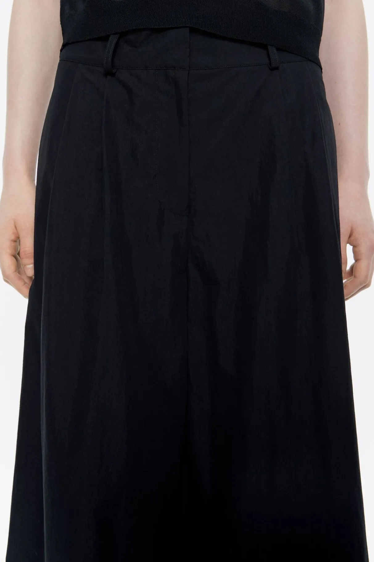 PantalÓN De AlgodÓN En Color Negro. Modelo De Corte Campana, Cierre De Cremallera Frontal, Bolsillos Laterales Y Cintura Con Maxipinzas Delanteras.