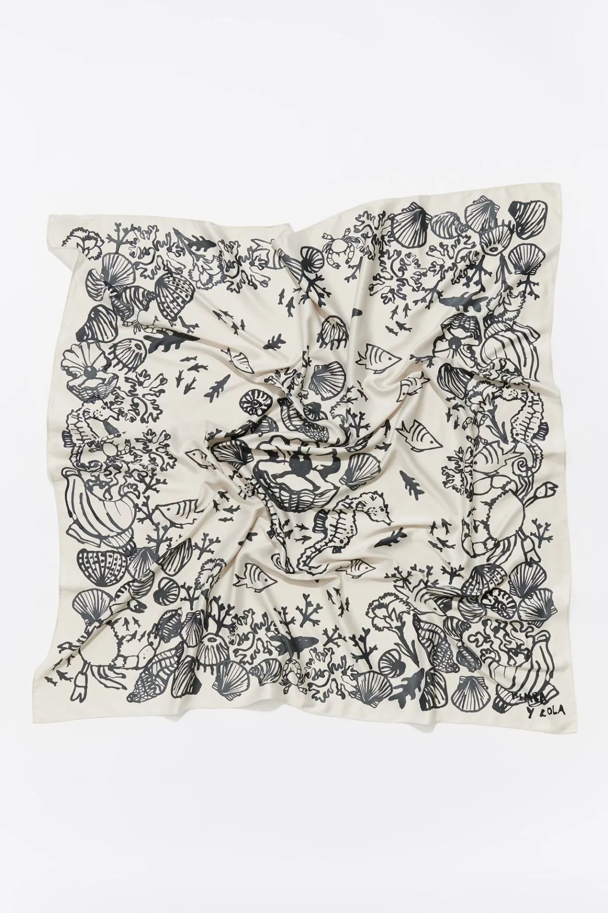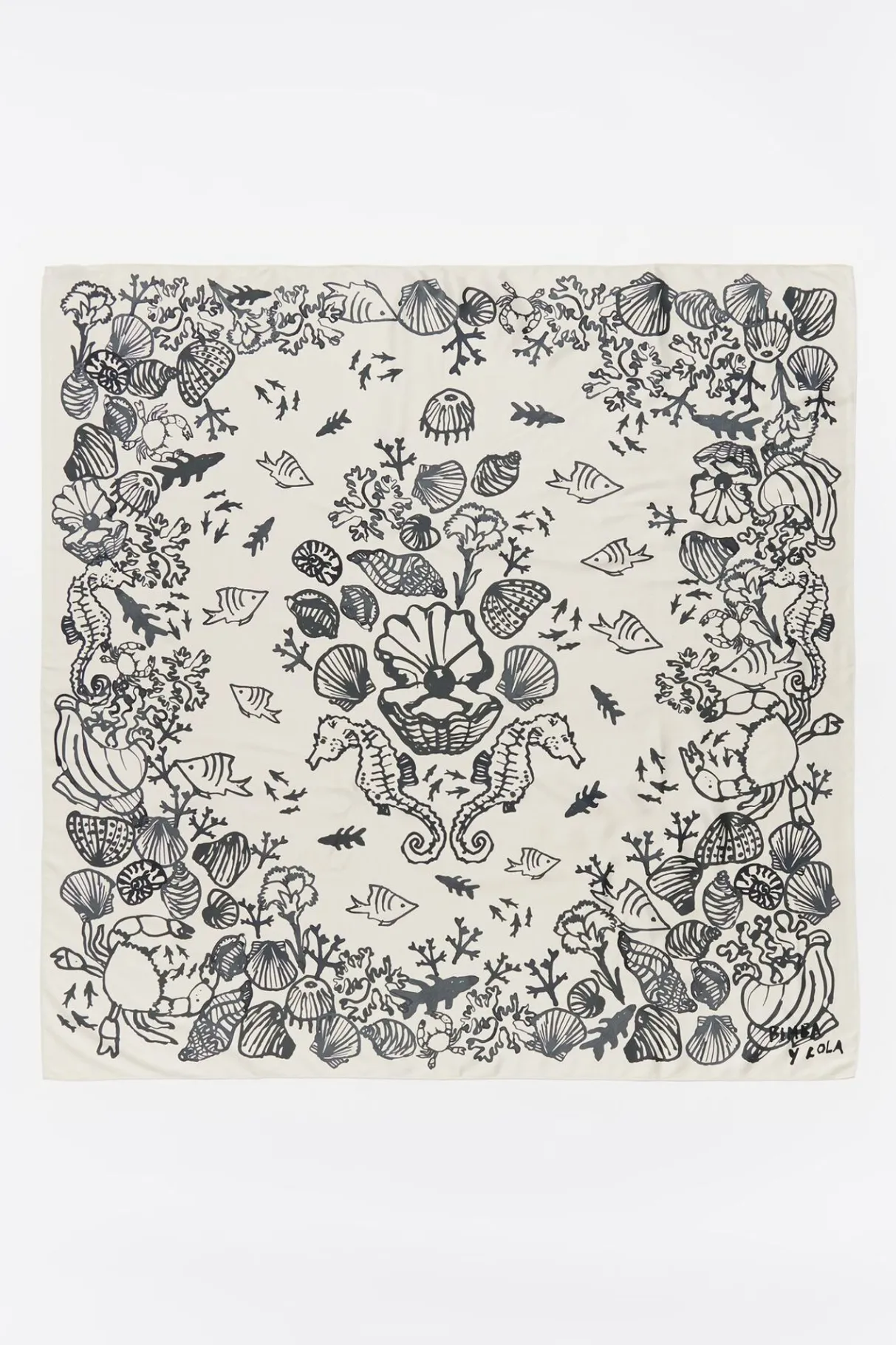 PaÑUelo Con Estampado De Fondo Del Mar En Color Antracita Sobre Fondo Blanco.