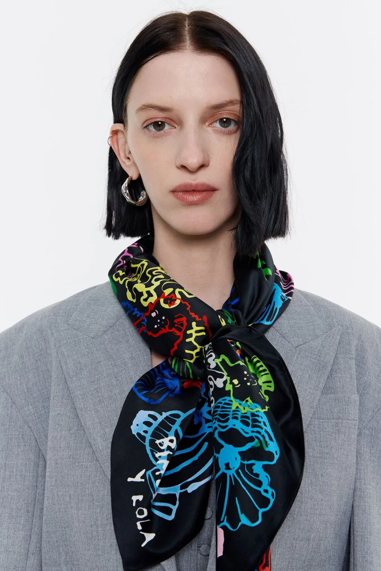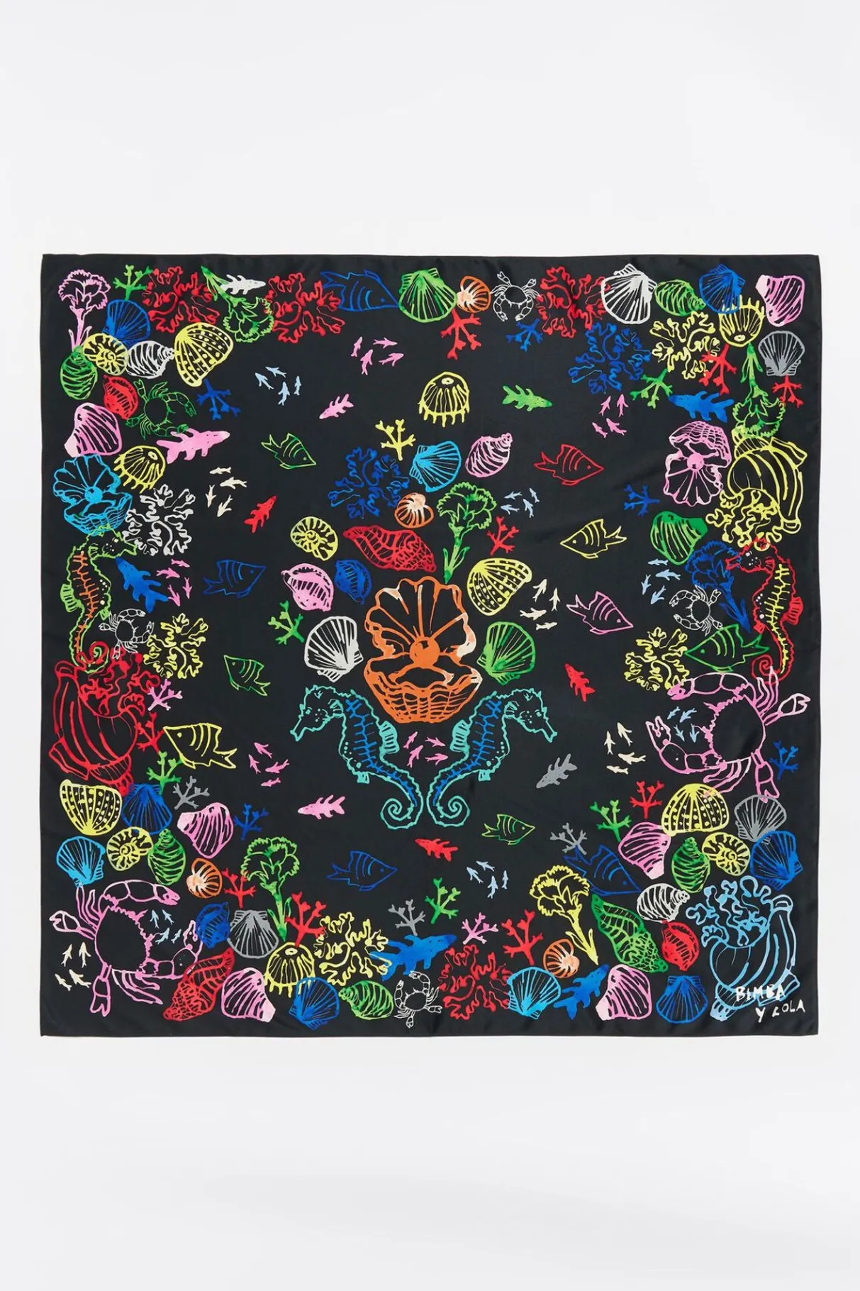 Mujer BIMBA Y LOLA Pañuelos<Panuelo Fondo Del Mar Multicolor Fondo Negro
