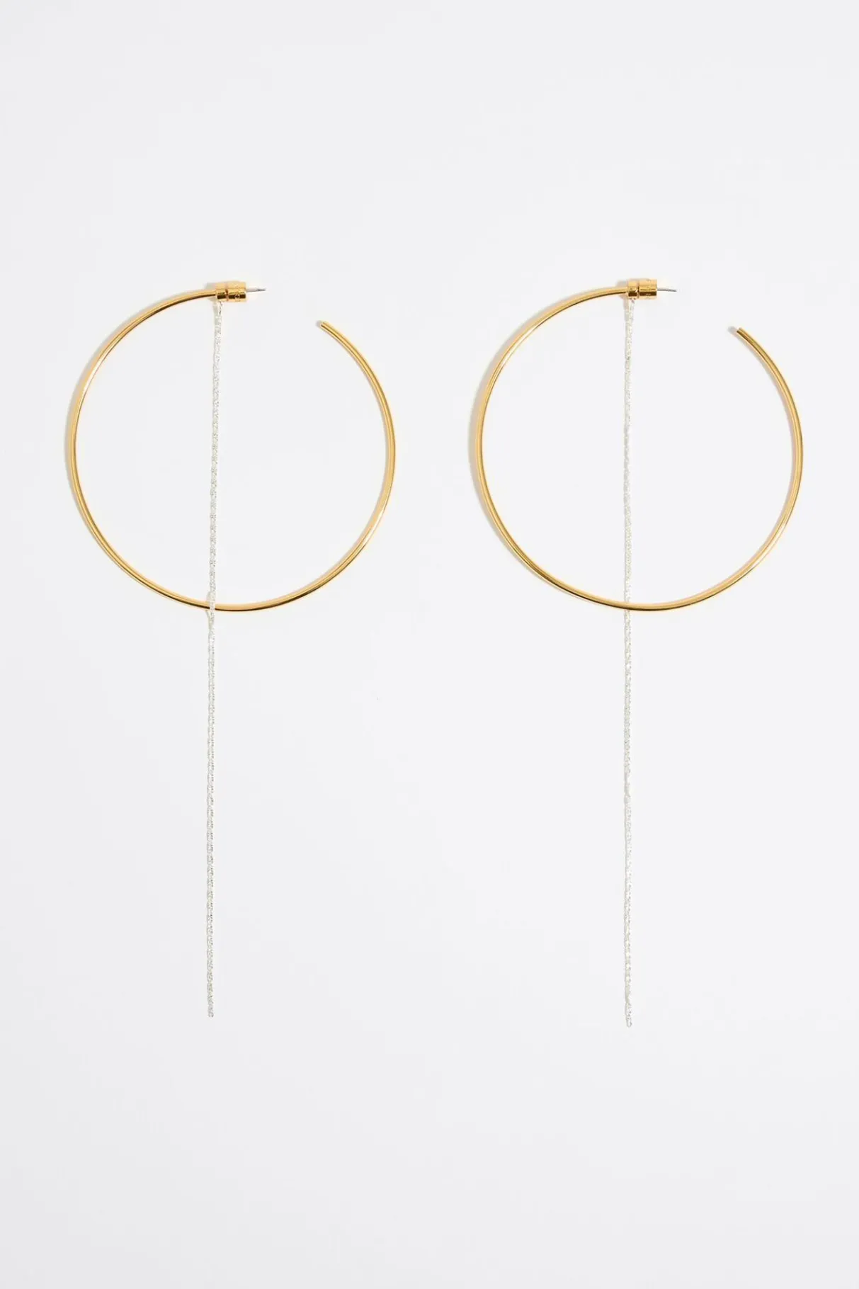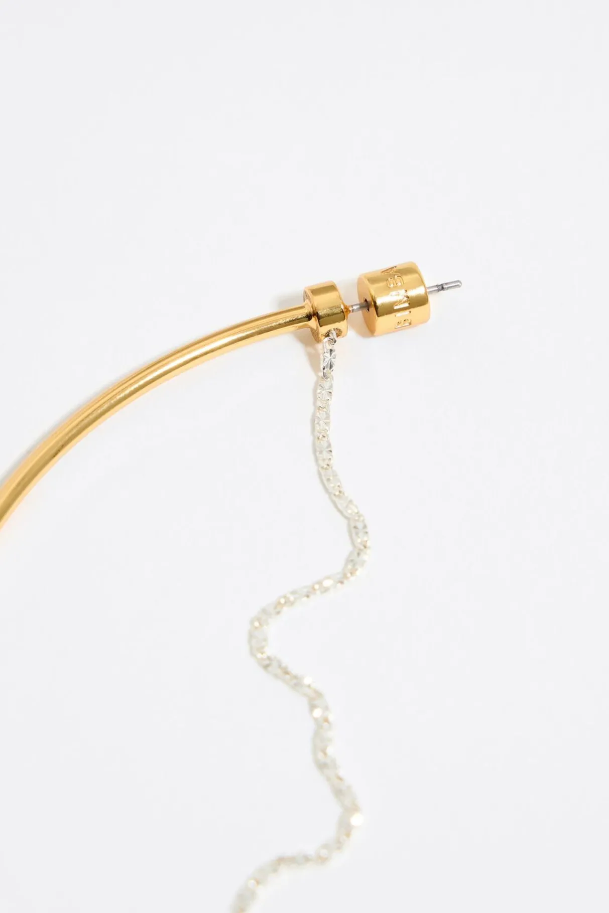Pendientes De Aro Maxi De Metal Dorado Y Cadena Fina Plateada. Modelo Con Cierre A PresiÓN. Personalizado Con Logo Grabado.