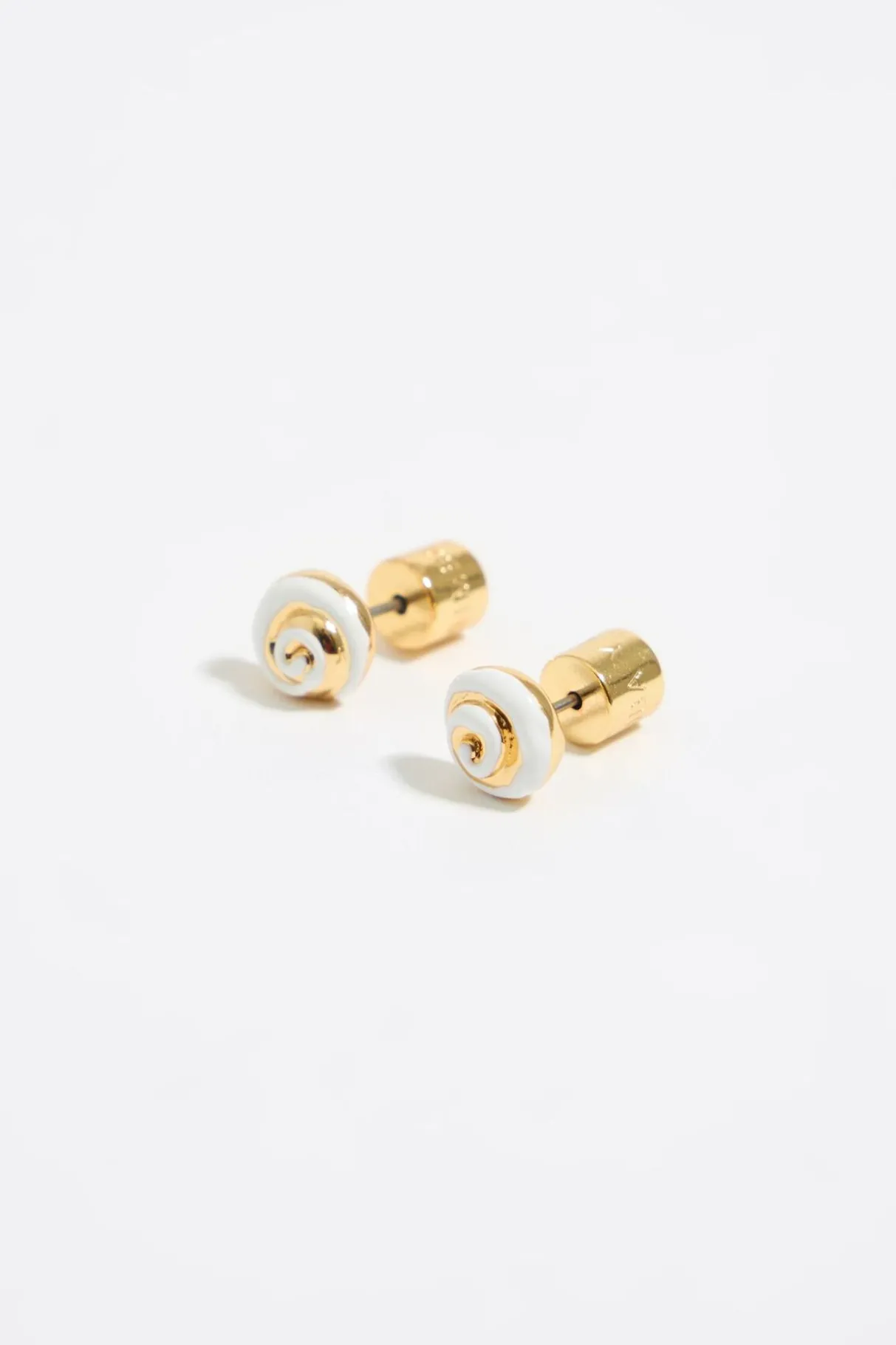 Pendientes De Metal Dorado Con Forma De Caracolas En Color Marfil. Modelo Con Cierre De PresiÓN.