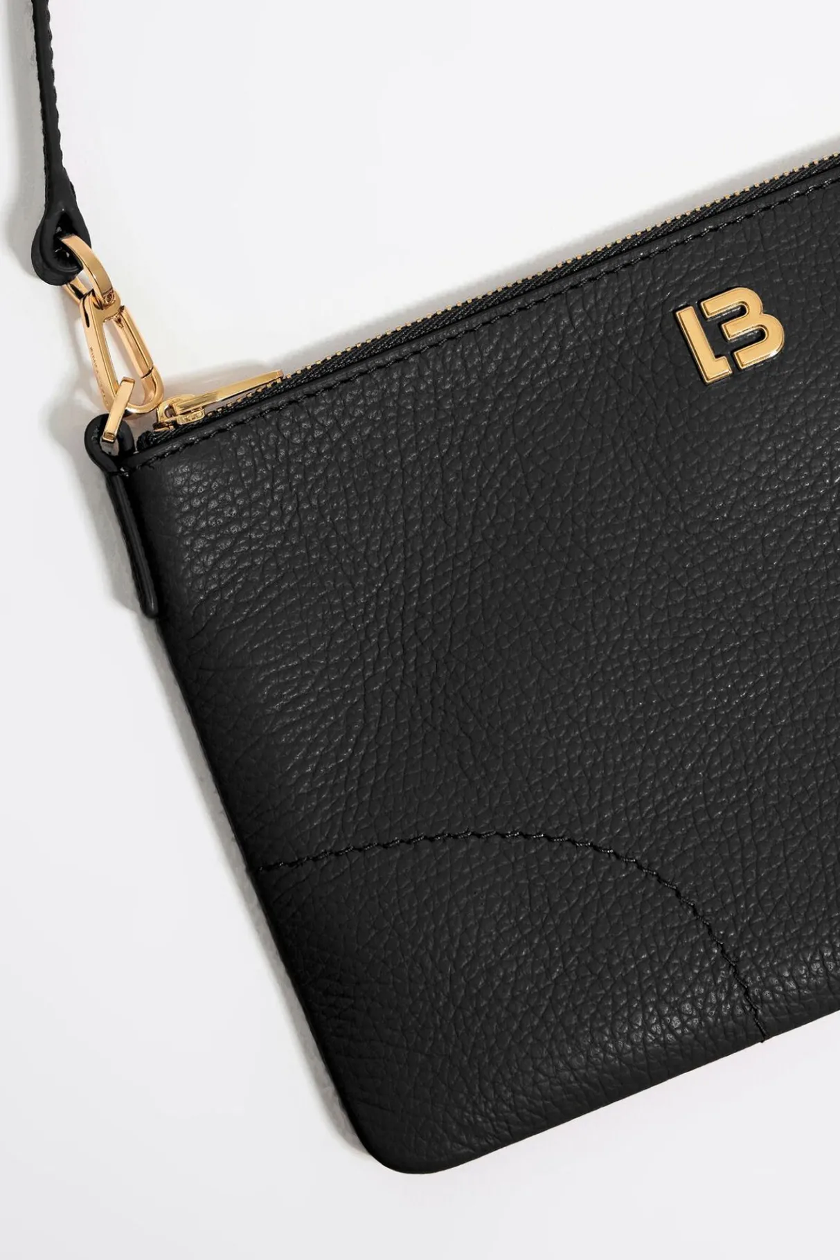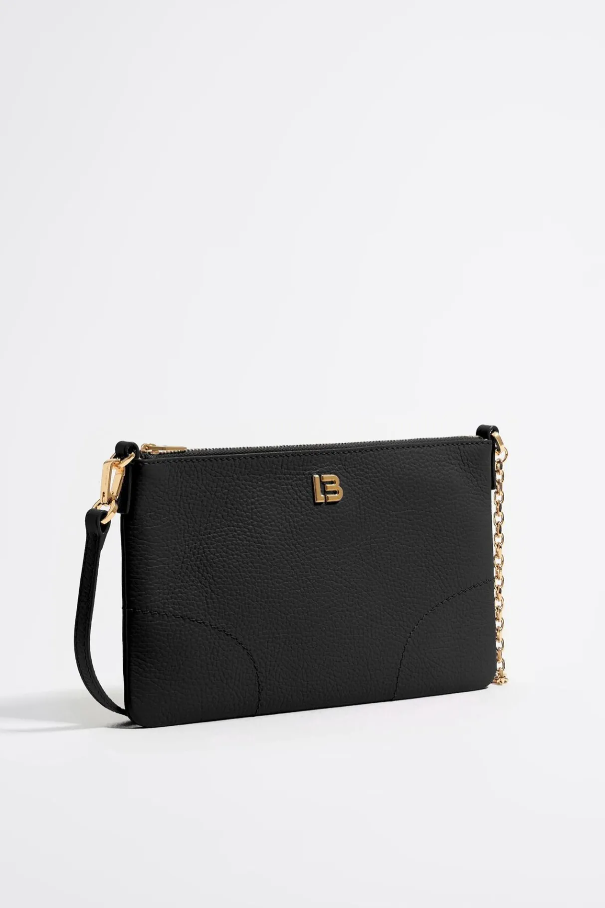 Bolso Bandolera De Piel En Color Negro. Modelo De TamaÑO Mini, Cierre De Cremallera, Asa De Piel Y Cadena Ajustable, Y Bolsillo Interior. Exterior Personalizado Con Logo Lb.