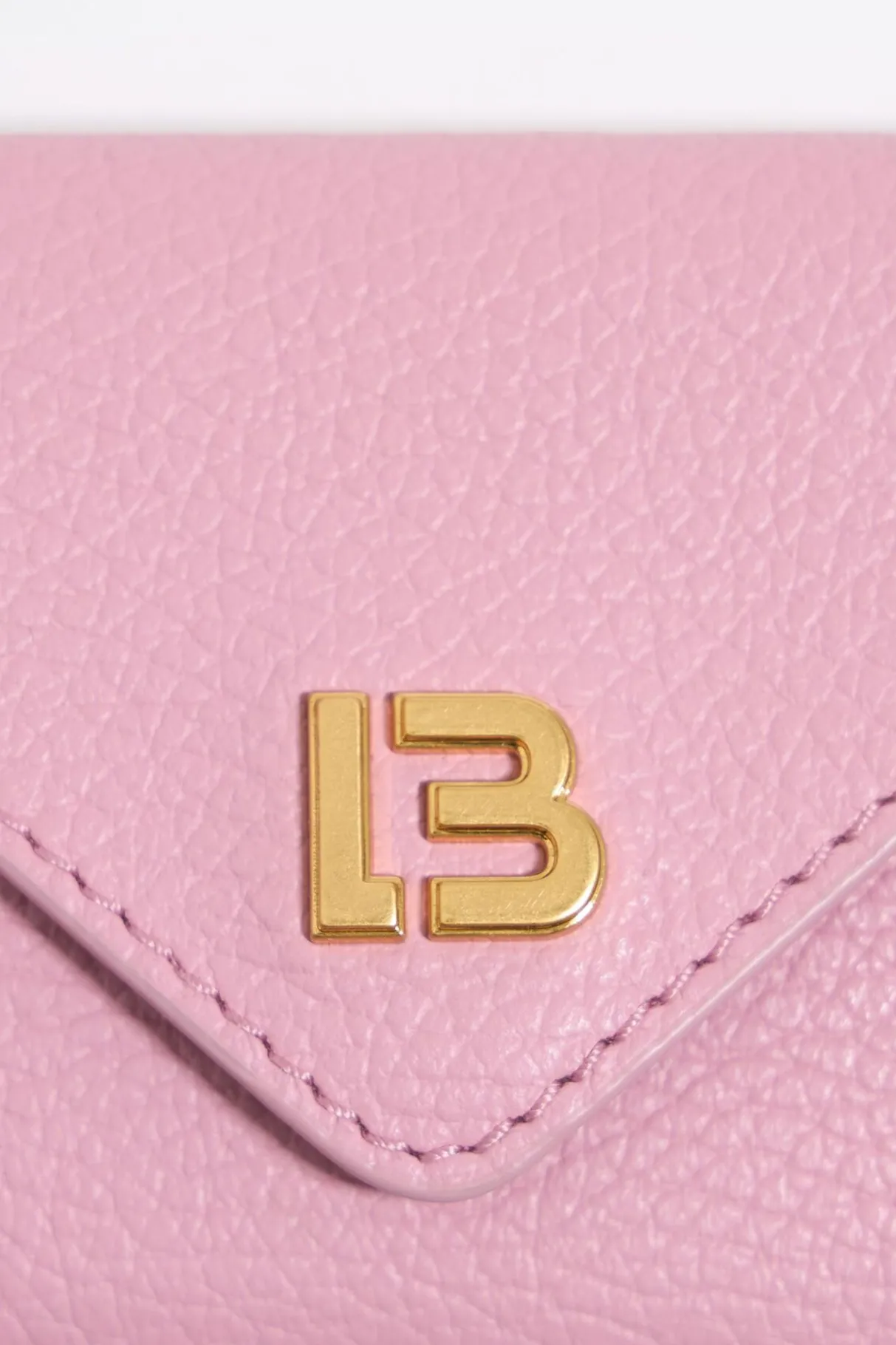 Cartera De Piel Con Solapa En Color Rosa. Modelo Con Cierre A PresiÓN Y Tarjetero Interior. Exterior Personalizado Con Logo Lb.