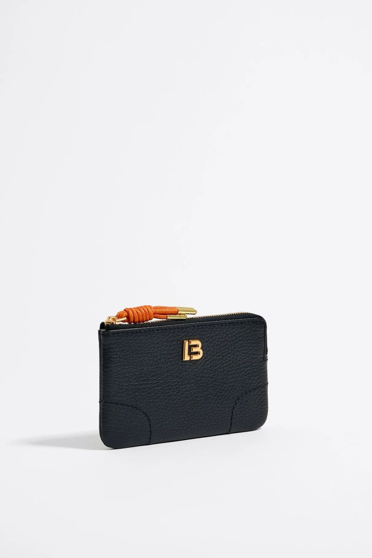 Monedero De Piel En Color Negro. Modelo Con Cierre De Cremallera, Tirador Con Cabo Y Bolsillo Interior. Exterior Personalizado Con Logo Lb.