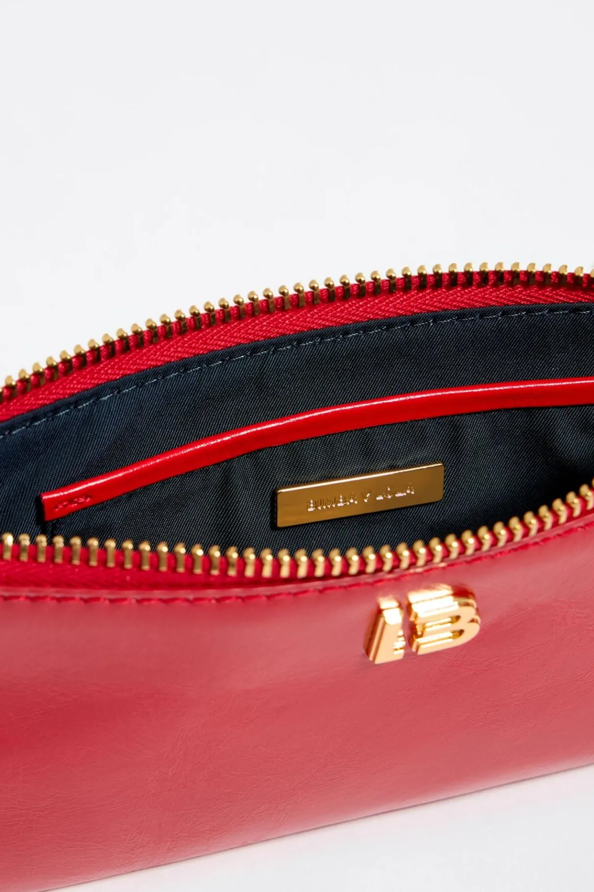 Monedero De Piel En Color Rojo. Modelo Con Cierre De Cremallera, Bolsillo Interior Y Asa De Mano De Cadena. Exterior Personalizado Con Logo Lb MetÁLico. Este Modelo Contiene 100% PoliÉSter Reciclado.