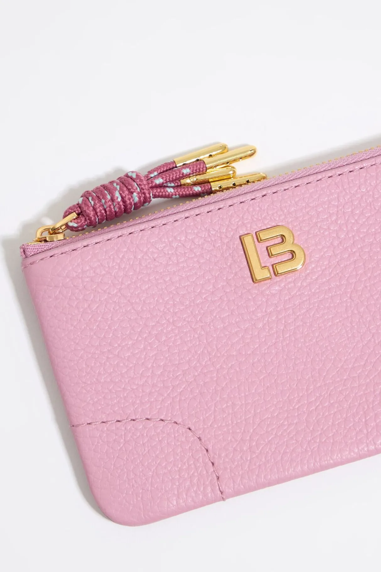 Monedero De Piel En Color Verde Rosa. Modelo Con Cierre De Cremallera, Tirador Con Cabo Y Bolsillo Interior. Exterior Personalizado Con Logo Lb. Este Modelo Contiene 100% AlgodÓN Reciclado.