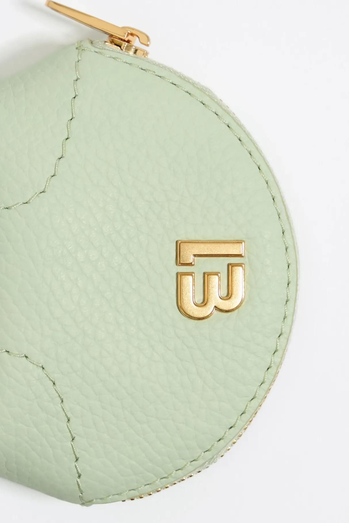 Monedero De Piel En Color Verde Pastel. Modelo Con Cierre De Cremallera Y Exterior Personalizado Con Logo Lb. Este Modelo Contiene 100% AlgodÓN Reciclado.