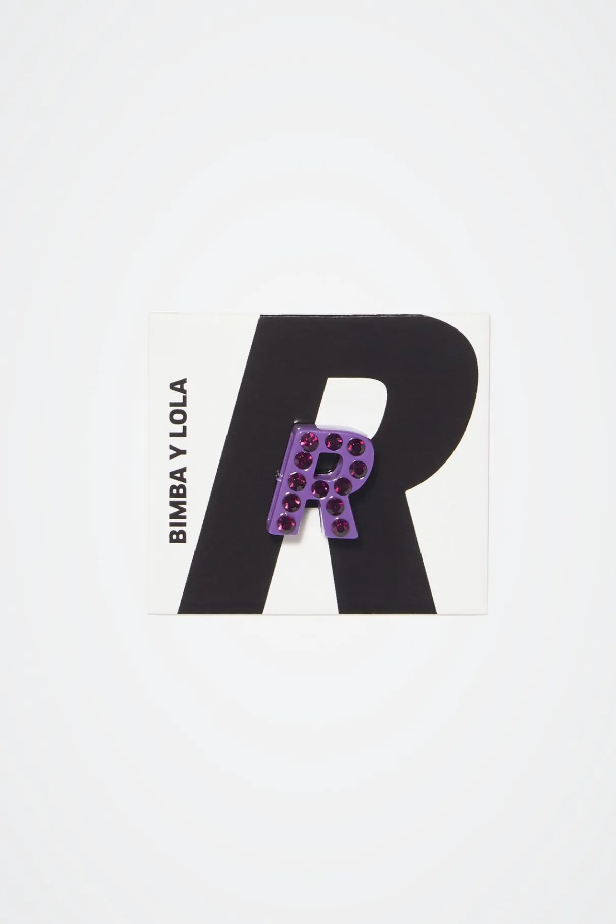 Charm De Metal Con Letra R Para Pulsera Personalizada Con Cristales En Color Violeta.