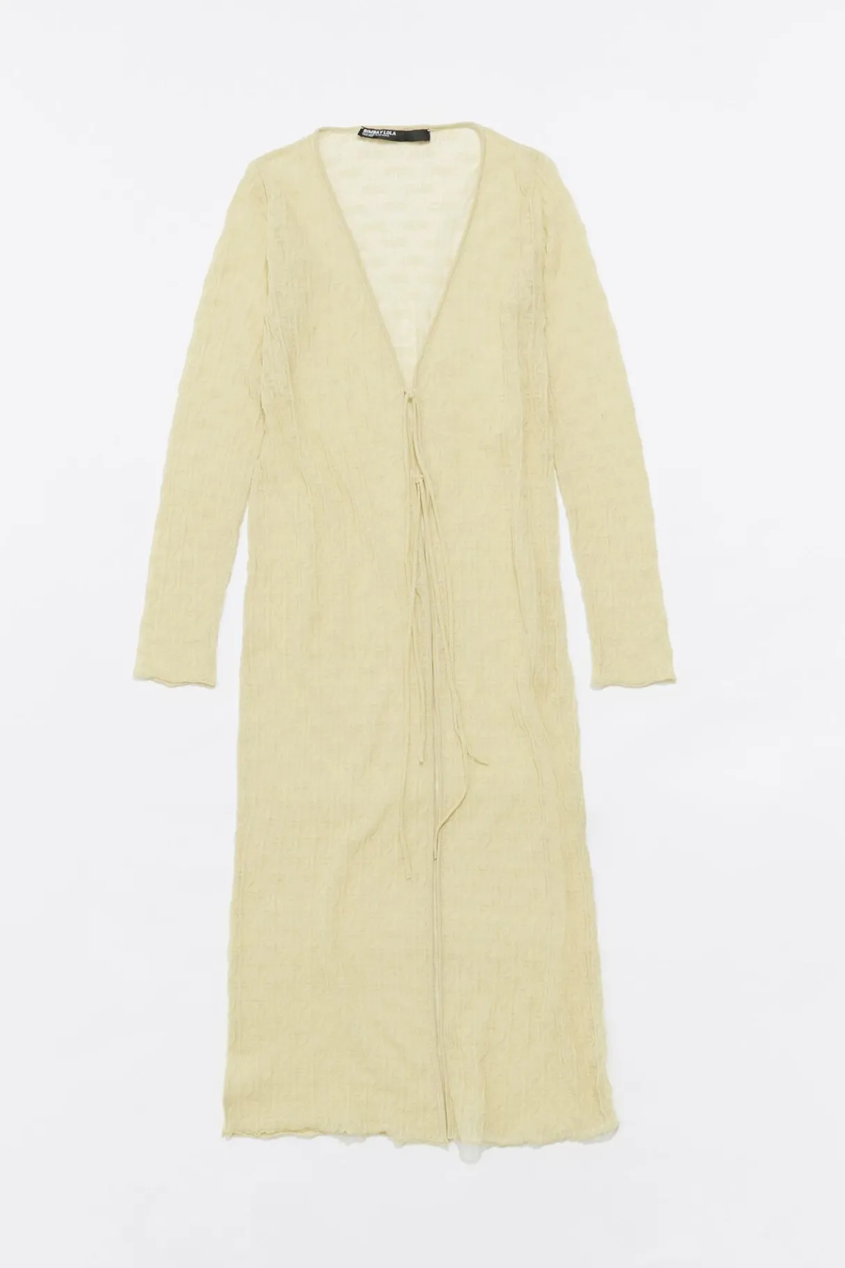 CÁRdigan Ajustada Larga De Punto En Color Lima. Modelo Con Escote Pico, Manga Larga Ajustada Y Cierre Frontal Con Lazos.