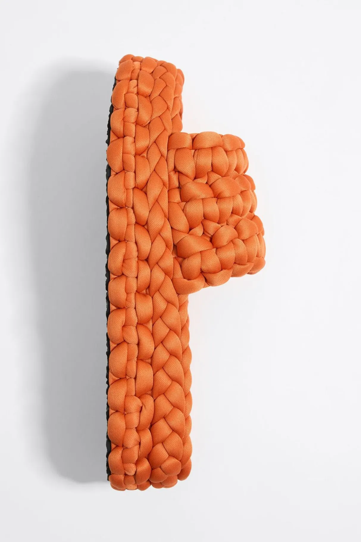 Sandalia Plana Con Tubular Trenzado A Mano En Color Naranja. Modelo Con Pala, Etiqueta Con Logo Bordado En La Planta Y Suela Logotipada.