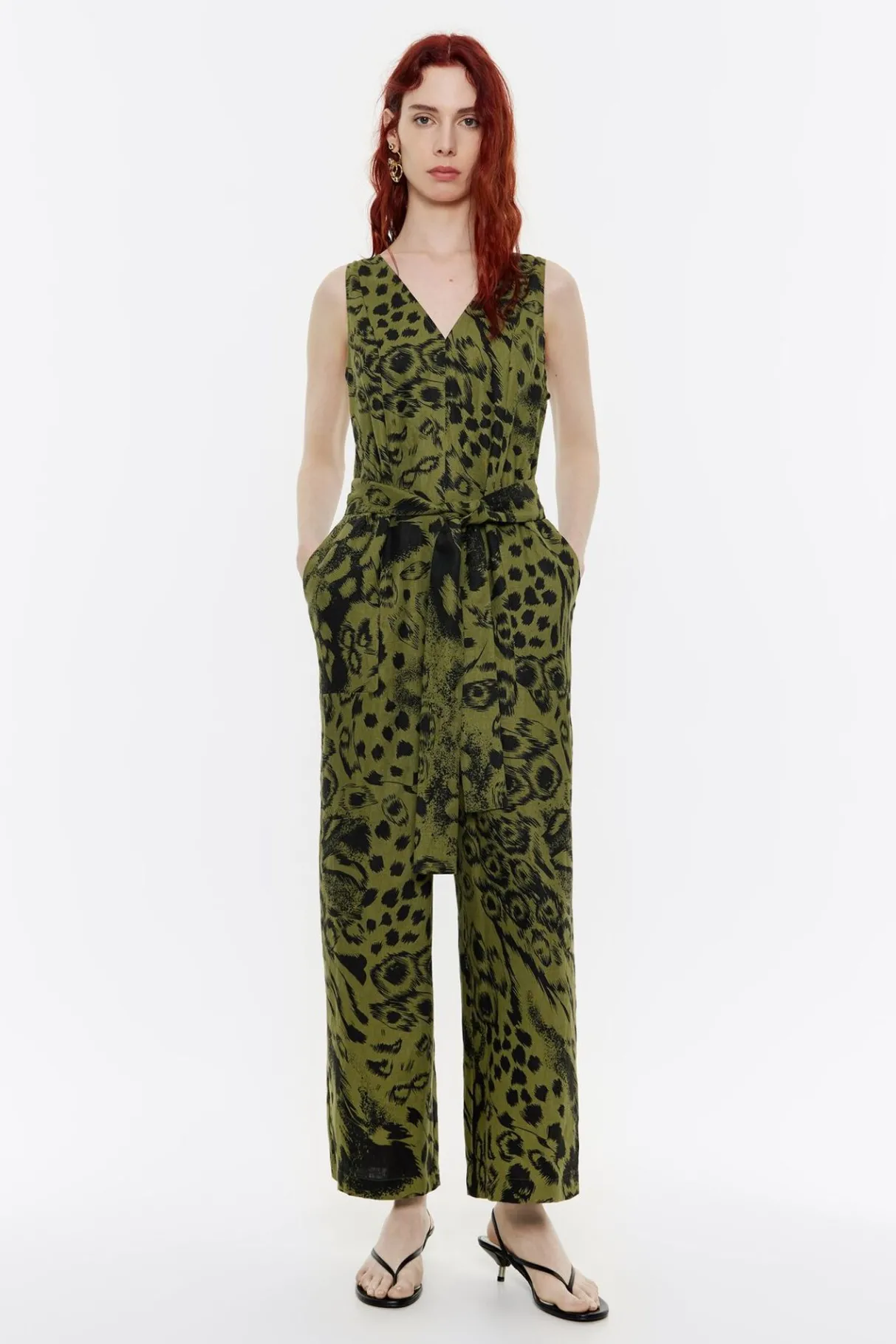 Mujer BIMBA Y LOLA Vestidos Y Monos<Mono Lino Animal Mix Verde
