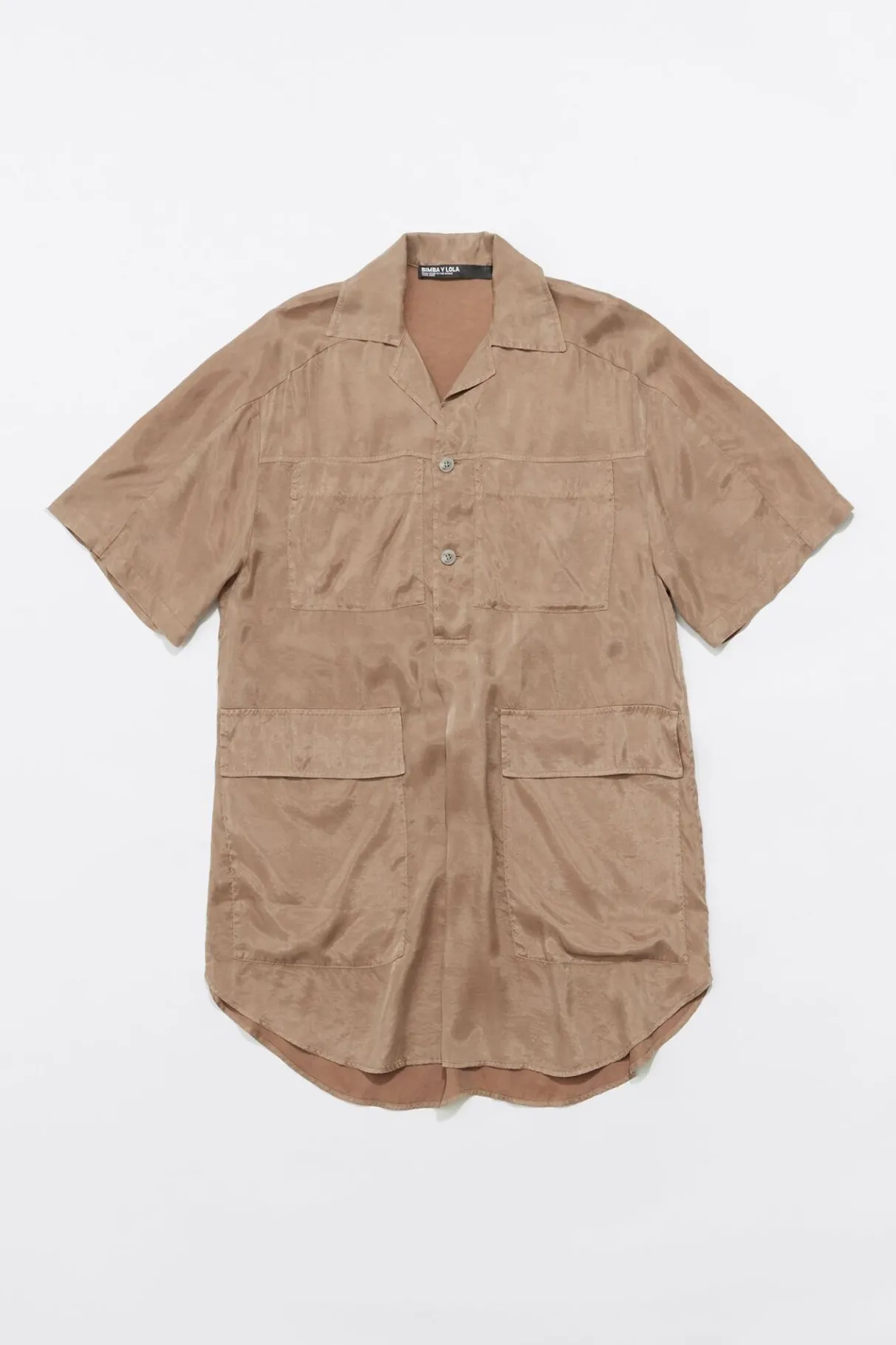 Vestido Corto De Lyocell En Color Camel. Modelo De Corte Oversize, Con Cuello Camisero Con Solapas, Manga Corta Y Cierre De Botonadura Frontal. Bolsillos PlastrÓN En Pecho Y Bolsillos Fuelle Con Tapeta En El Bajo Delantero.