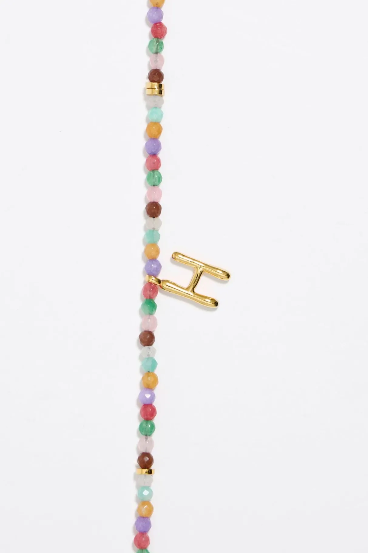 Collar Corto De Piedras Multicolores Con Letra H De Metal Dorado. Modelo Con Cierre De MosquetÓN Y Pieza En Forma De CorazÓN De Metal Dorado Con Cristal.