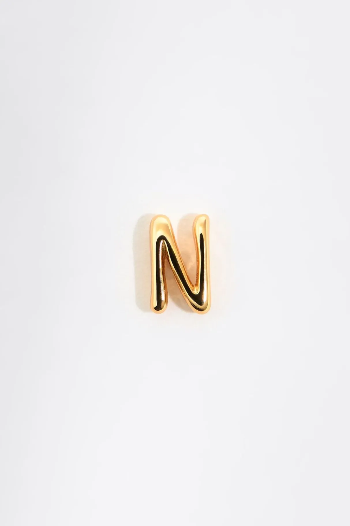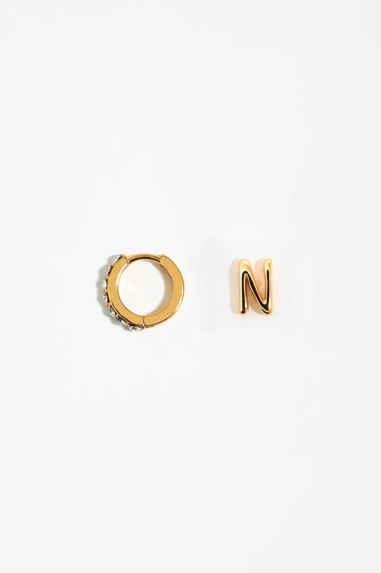Pendientes De Aro Mini Dorado Con Cristales Y Letra N. Cierre De PresiÓN. Personalizado Con El Logo Grabado.