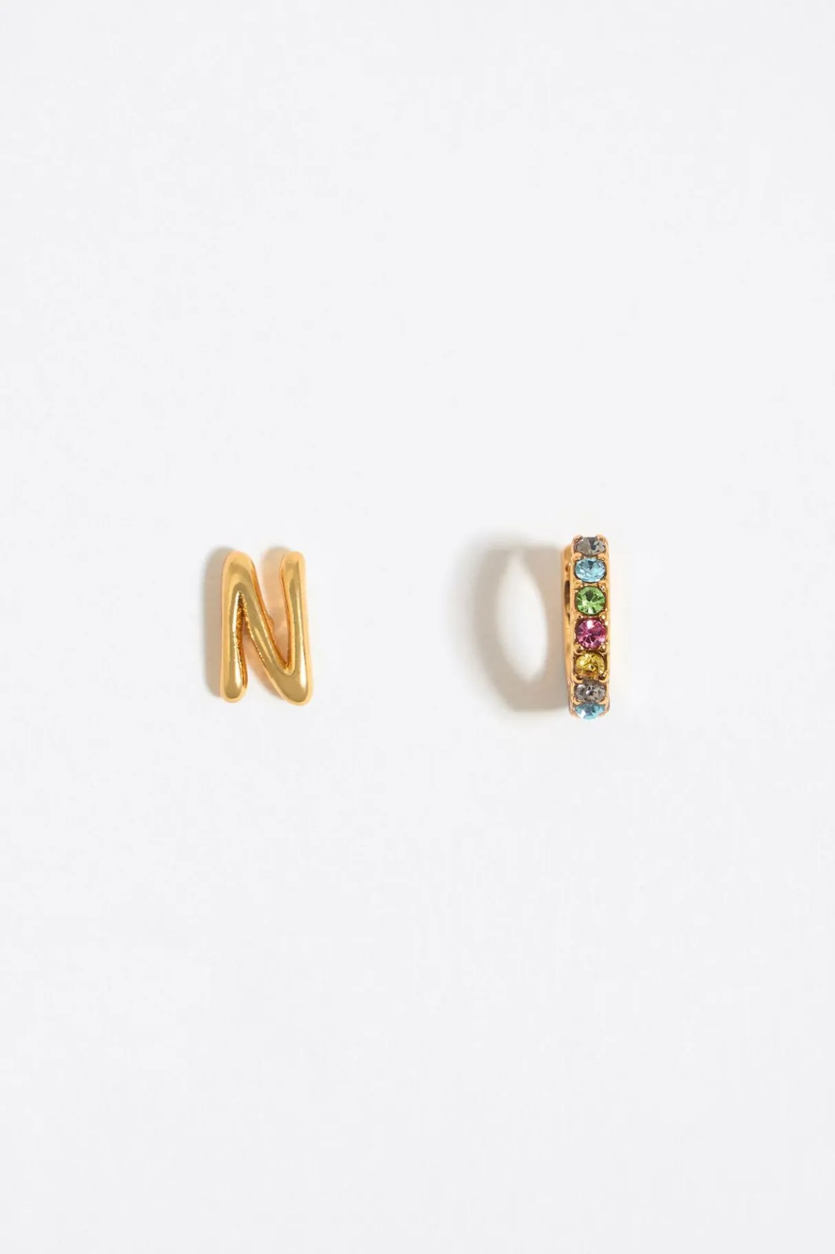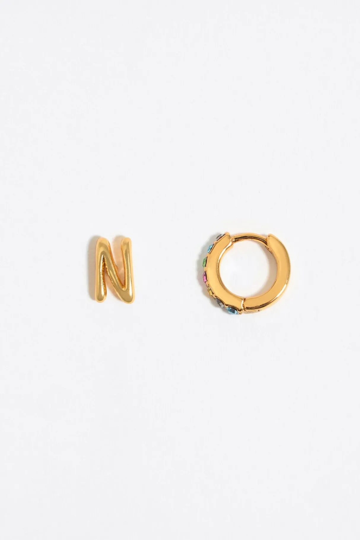 Mujer BIMBA Y LOLA Abecedario<Pendientes Letra N Y Aro Mini Cristales Multicolores