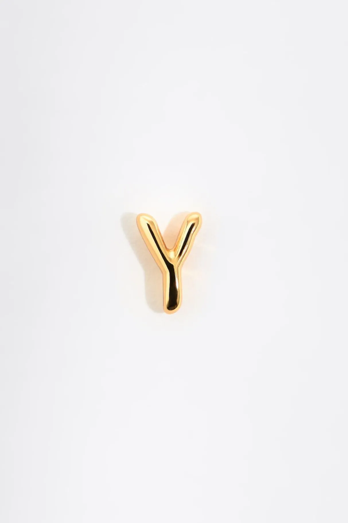 Pendientes De Aro Mini Dorado Con Cristales Y Letra Y. Cierre De PresiÓN. Personalizado Con El Logo Grabado.