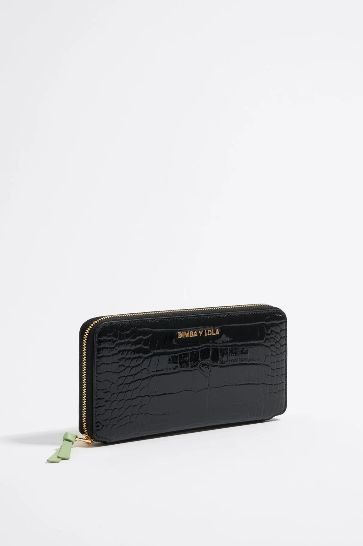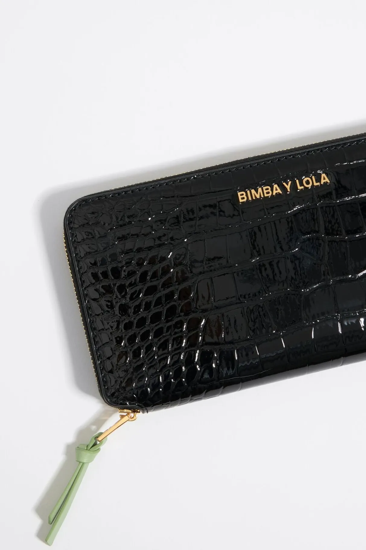 Mujer BIMBA Y LOLA Billeteras<Billetera Horizontal Grabado Cocodrilo Negra