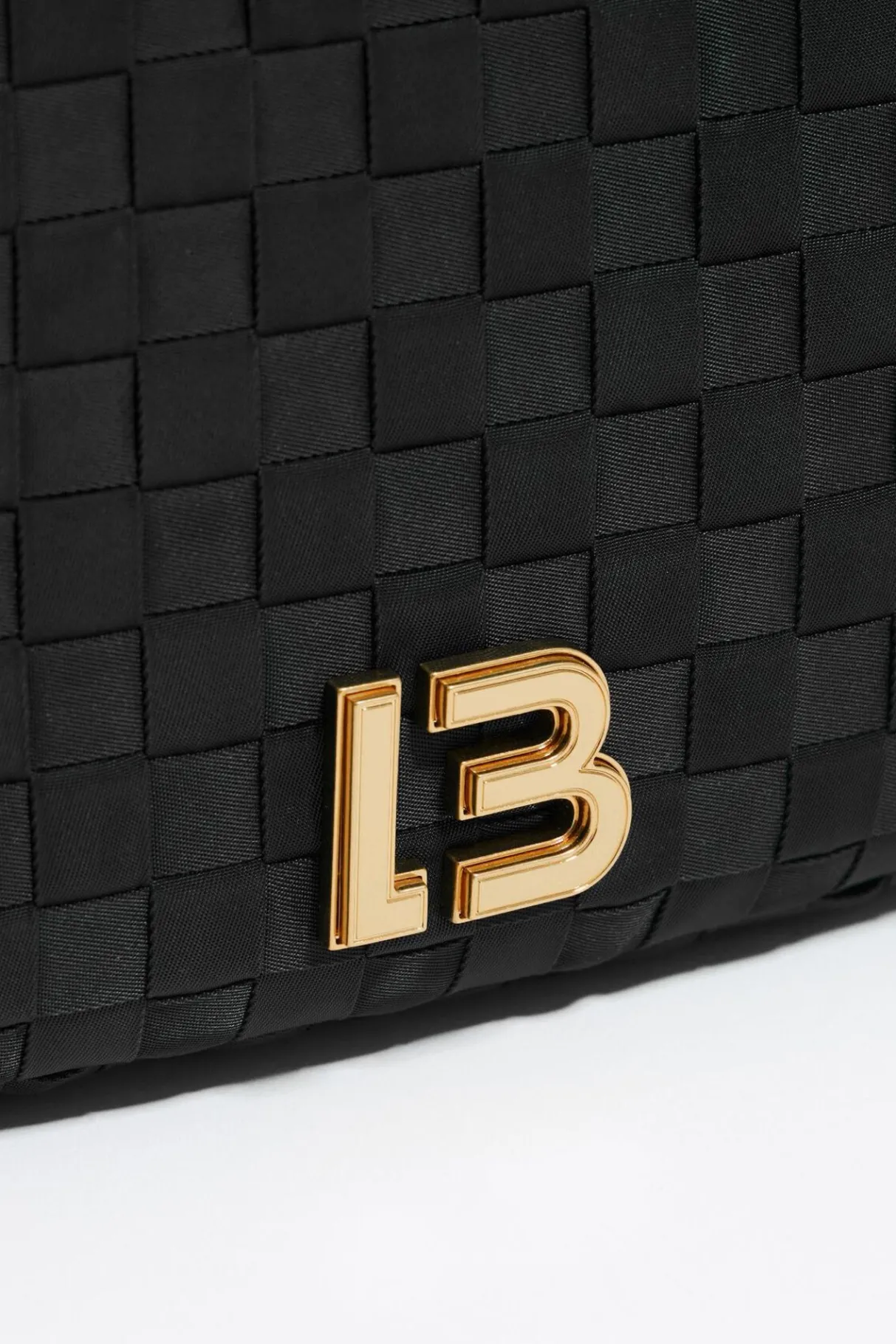 Bolso Bandolera De Nylon Trenzado En Color Negro. Modelo Con Cierre De Cremallera, Asa De Piel Y Cadena, Y Bolsillo Interior. Exterior Personalizado Con Logo Lb.