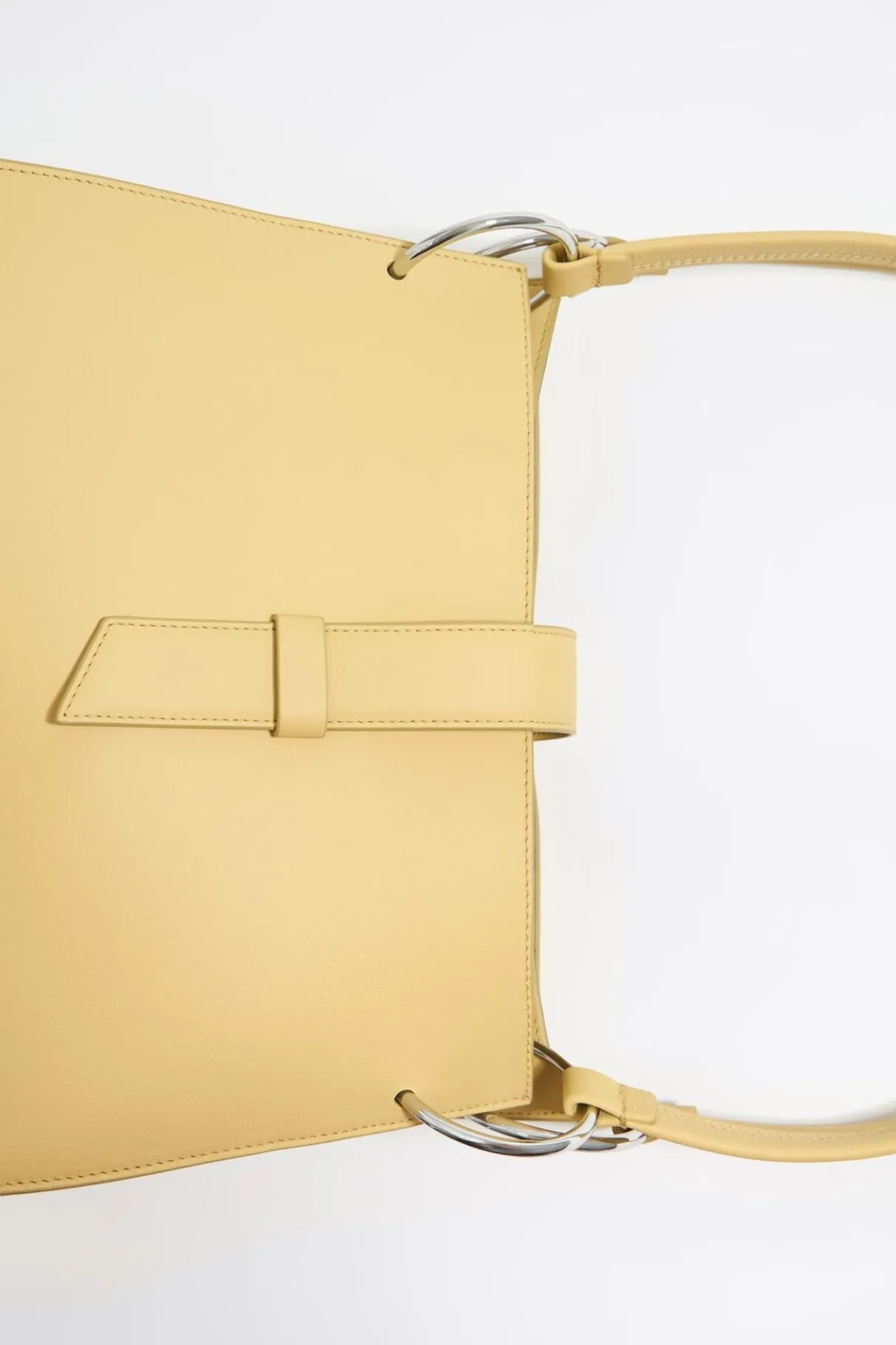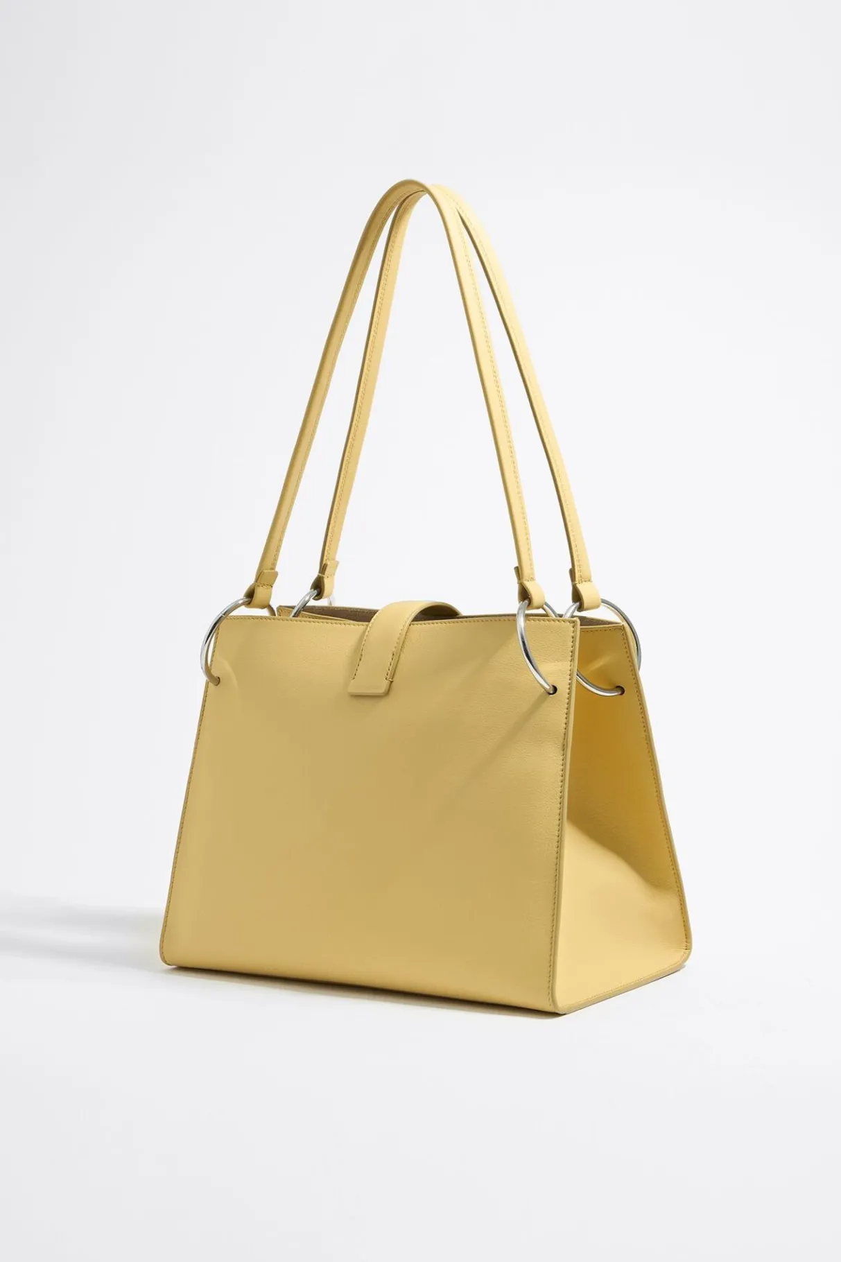 Bolso Shopper De Piel En Color Amarillo Topacio. Modelo De TamaÑO Grande, Cierre Con Tira De Piel, Doble Asa De Piel Y Doble Bolsillo Interior. Exterior Personalizado Con Logo MetÁLico.