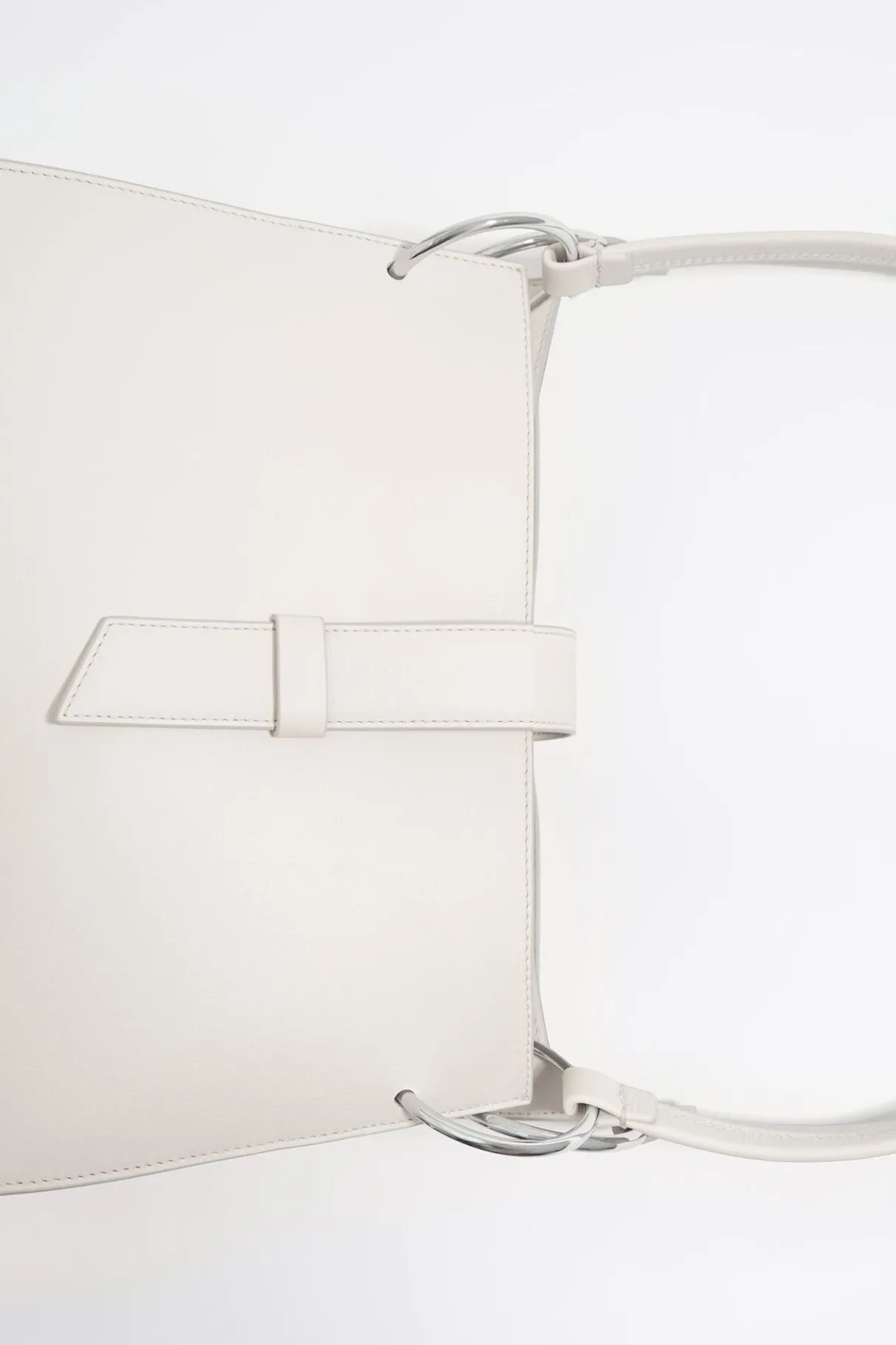Bolso Shopper De Piel En Color Blanco Roto. Modelo De TamaÑO Grande, Cierre Con Tira De Piel, Doble Asa De Piel Y Doble Bolsillo Interior. Exterior Personalizado Con Logo MetÁLico.