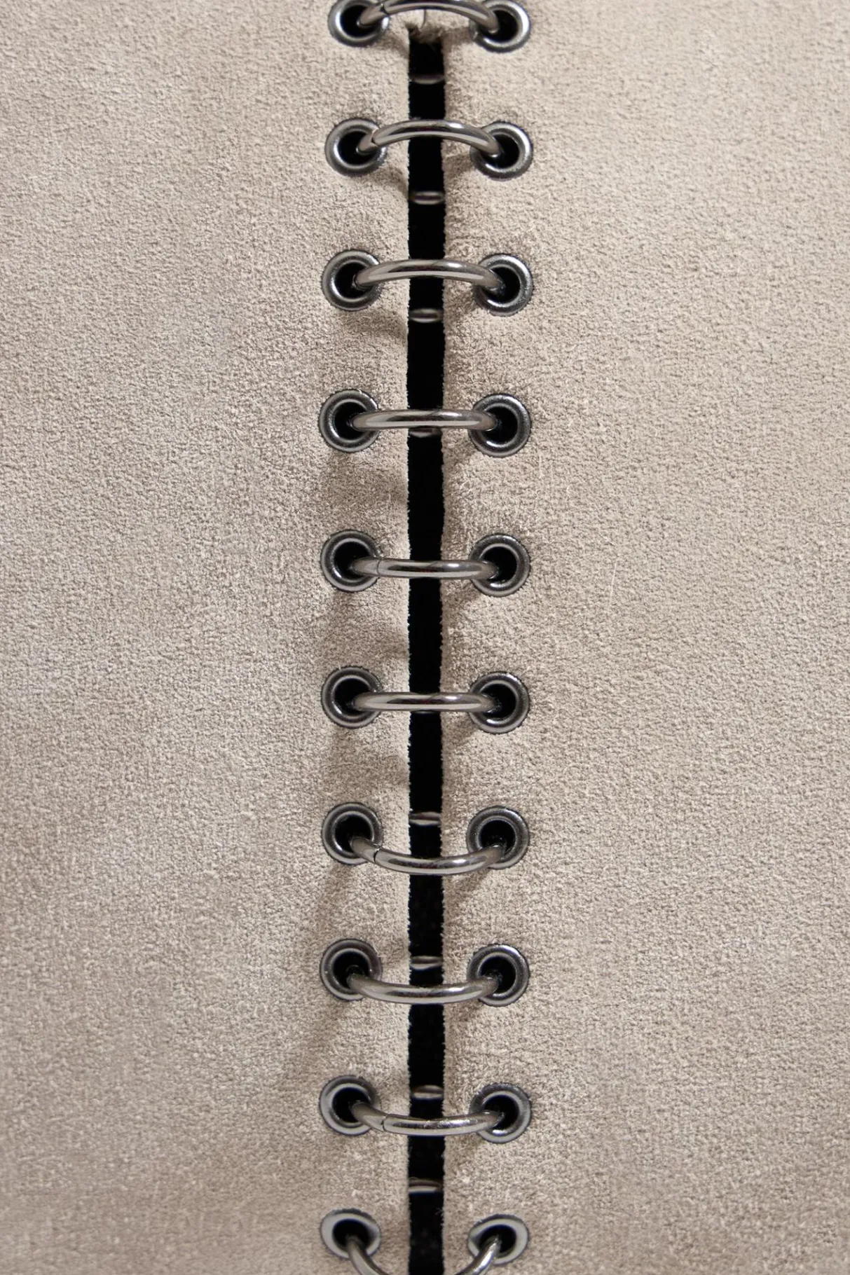 Bolso Shopper De Serraje En Color Piedra. Modelo De TamaÑO Grande, Cierre MagnÉTico, Asa Larga De Piel Ajustable, Doble Asa De Mano Y Bolsillo Interior. Exterior Personalizado Con Logo MetÁLico Y 116 Anillas De Metal Plateado.