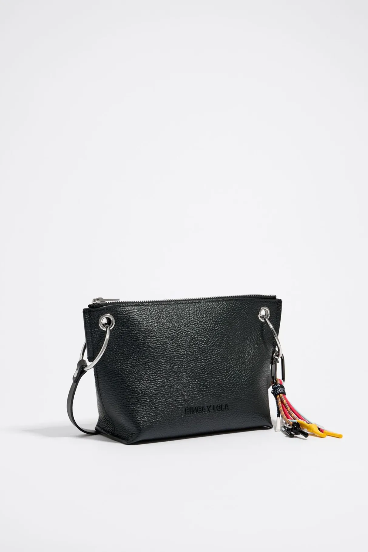 Bolso Bandolera De Piel Abatanada En Color Negro. Modelo De TamaÑO Mediano Con Cierre De Cremallera, Bolsillo Interior Plano Y Asa De Piel Regulable Con Charm. Exterior Personalizado Con Logo Lacado A Tono. 100% PoliÉSter Reciclado.