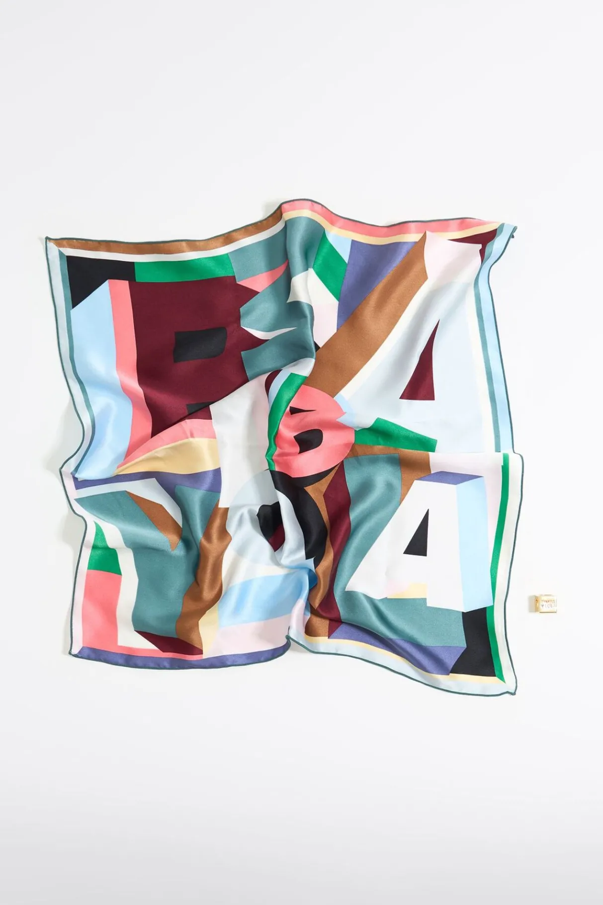 Charm PaÑUelo Con Logo GeomÉTrico Y Dado De Metal. Modelo Personalizado Con Logo Grabado Y Esmaltado En El Dado.
