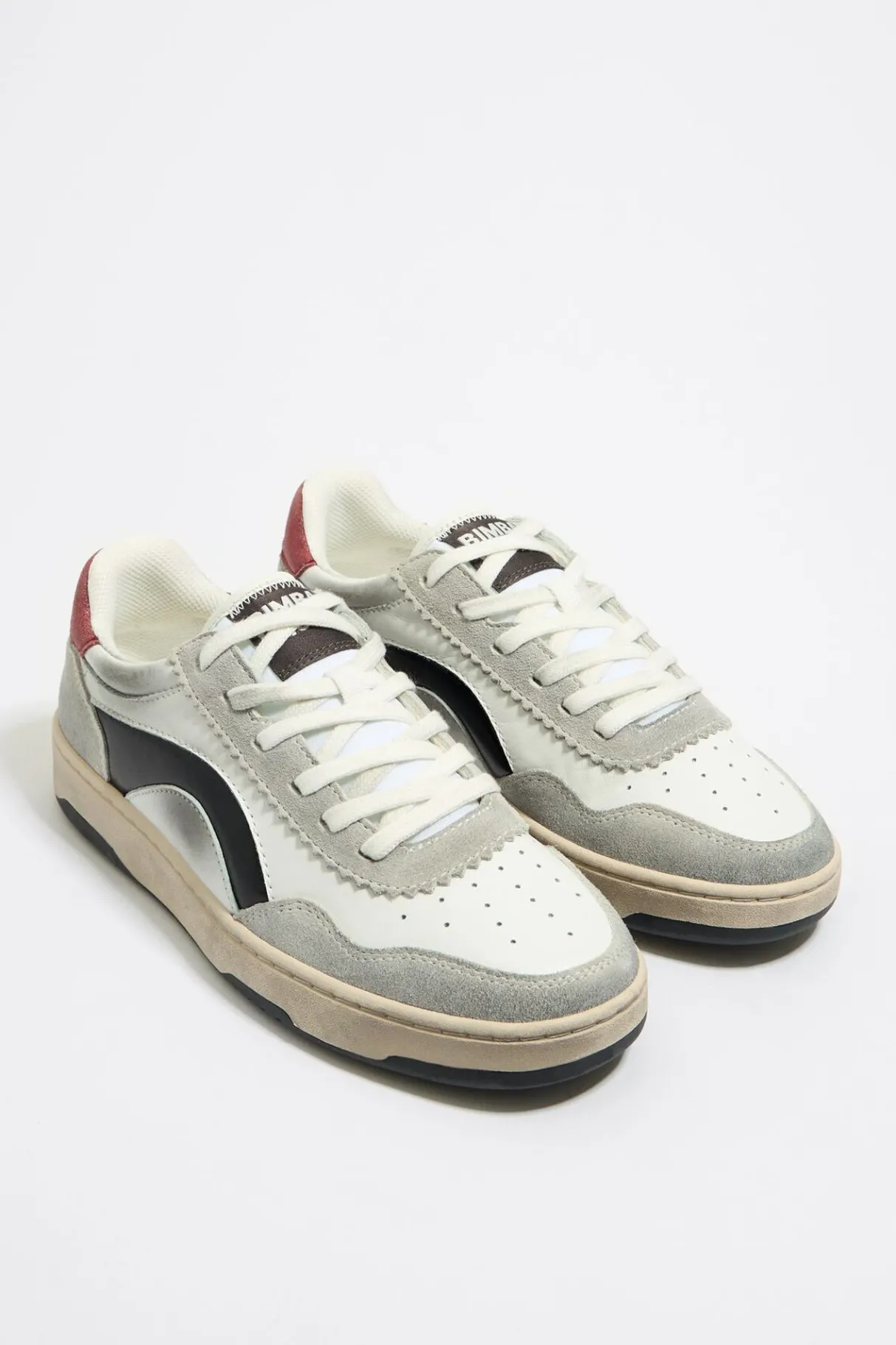 Deportiva Cupsole En Color Blanco. Modelo De Piel Y Serraje Con Efecto Envejecido. Parte Trasera Con El Logo Grabado A Contraste Y LengÜEta Personalizada Con Logo. Piso Bicolor Logotipado.