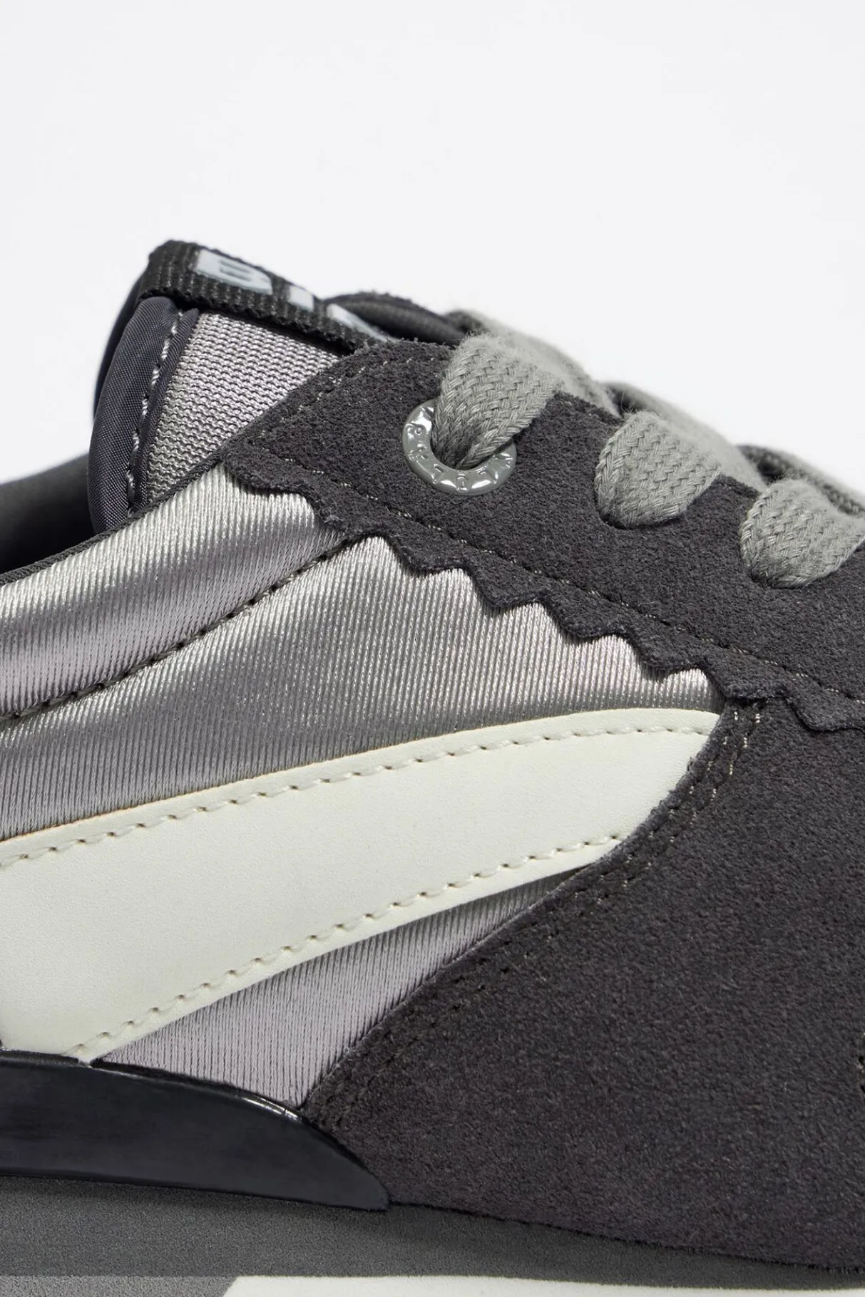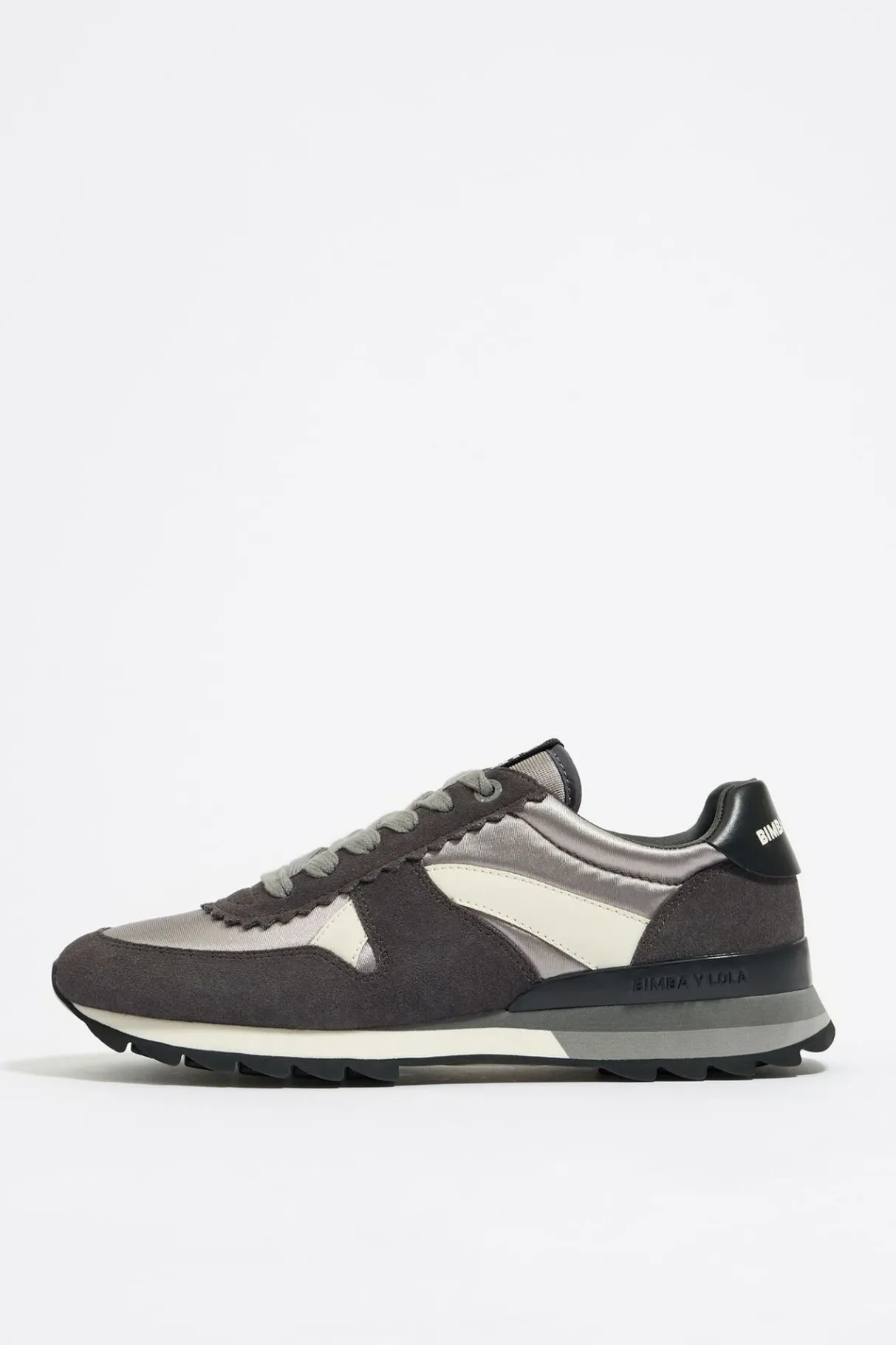 Deportiva TÉCnica En Color Plateado Oscuro. Modelo Confeccionado Con Piezas En Serraje Y Tejidos TÉCnicos. Empeine Festoneado Y LengÜEta Logotipada. Parte Trasera Con El Logo Grabado A Contraste. Estabilizador Personalizado Y Piso Tricolor Con Acabado Dentado.