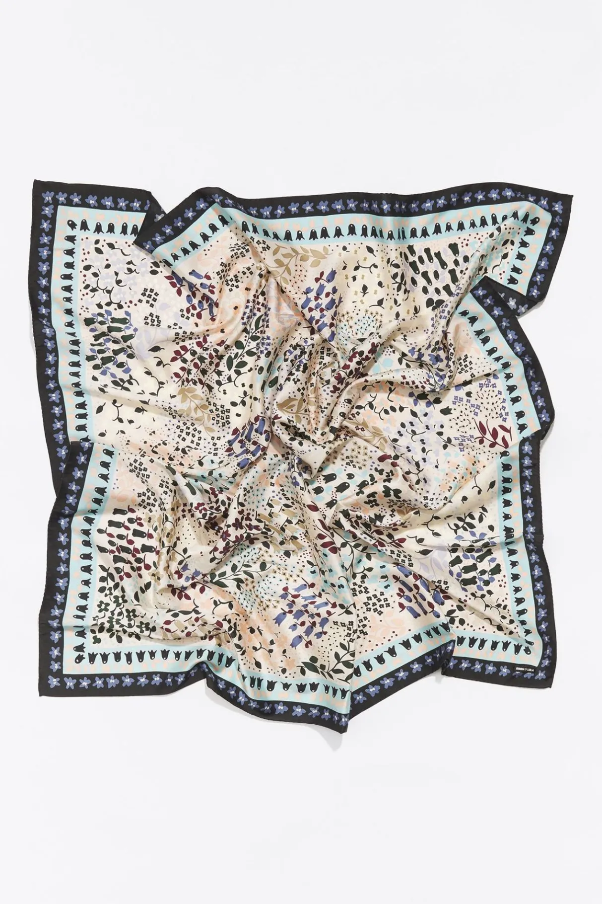 PaÑUelo Con Estampado De Campanillas Sobre Fondo Gris. Modelo Personalizado Con Etiqueta Logotipada. 100% PoliÉSter Reciclado.