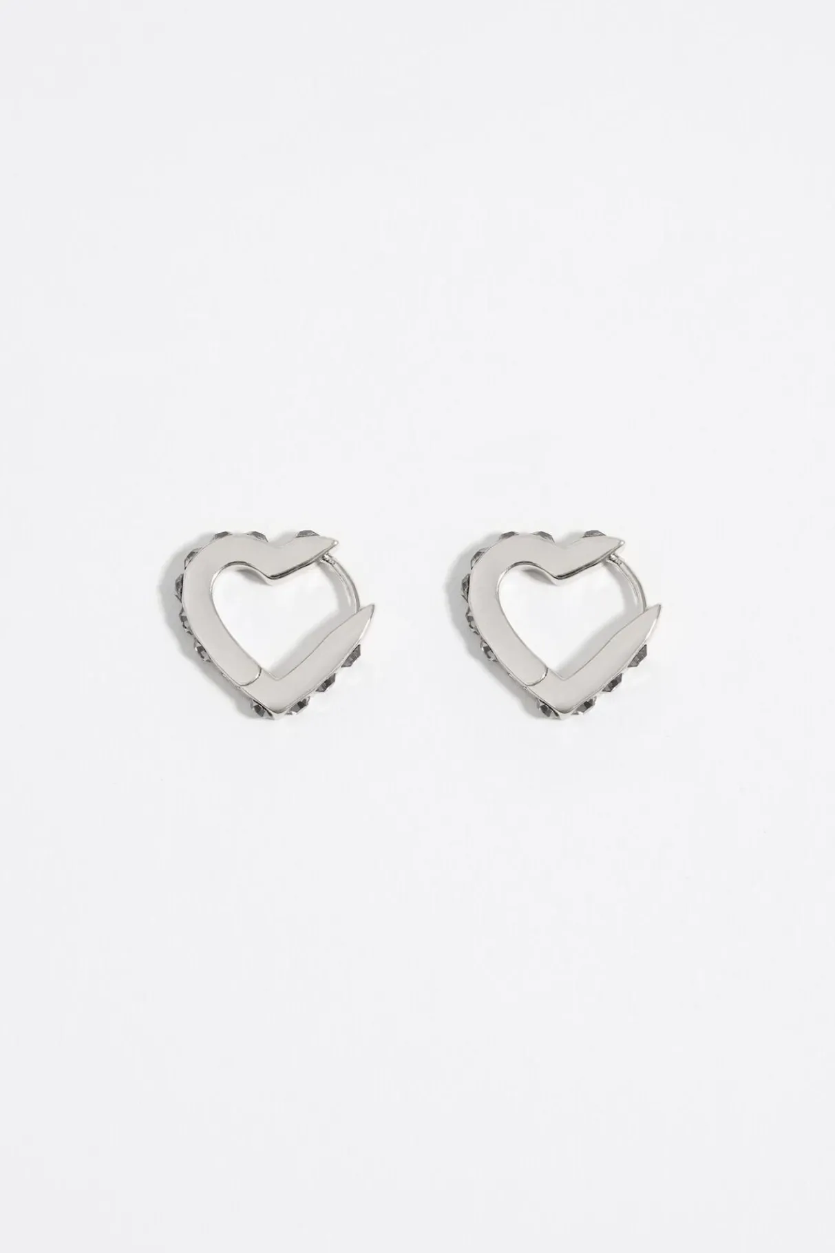 Pendientes De Metal Plateado En Forma De CorazÓN Con Cristales. Modelo Con Cierre De Gancho. Personalizado Con Logo Grabado.