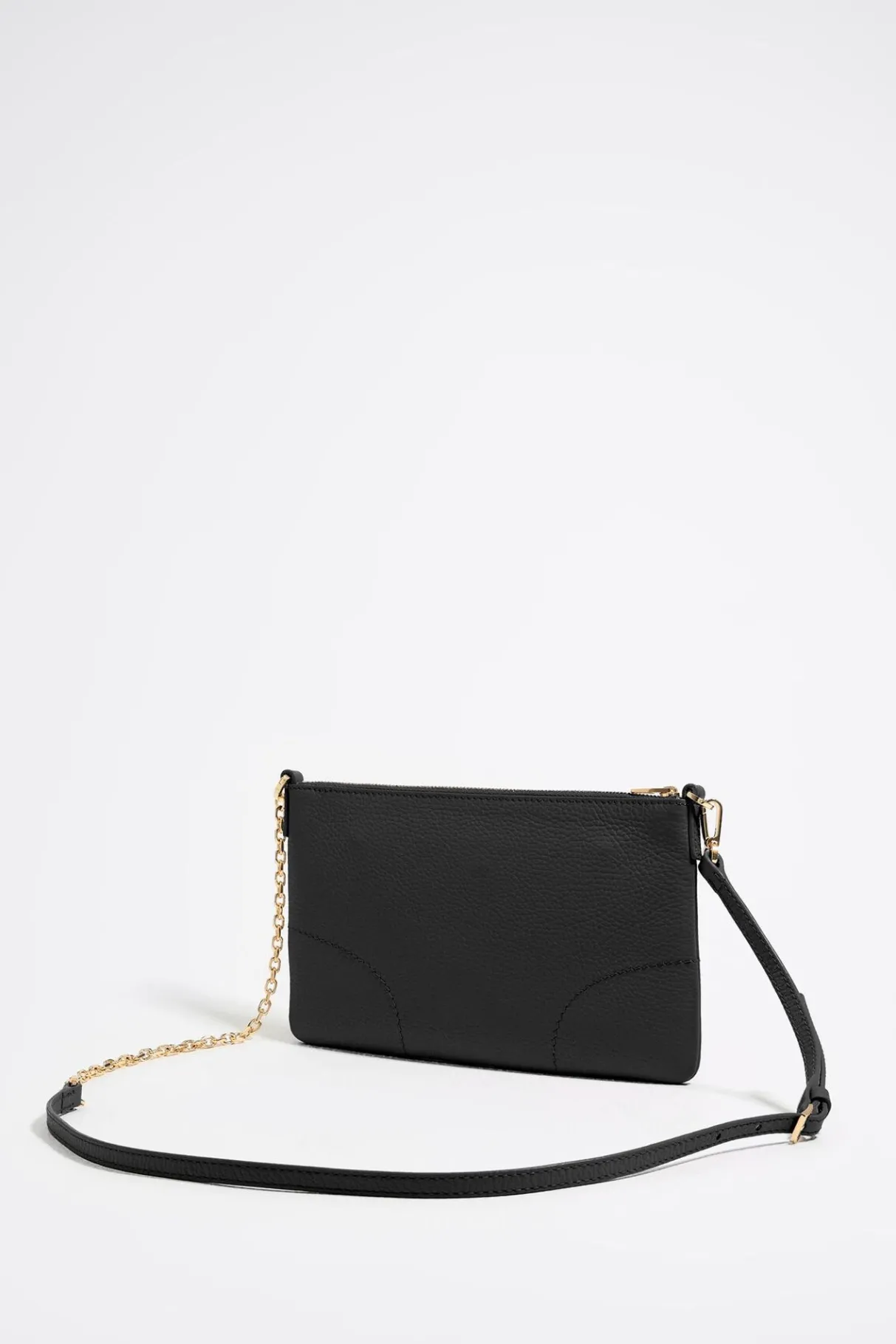 Bolso Bandolera De Piel En Color Negro. Modelo De TamaÑO Mini, Cierre De Cremallera, Asa De Piel Y Cadena Ajustable, Y Bolsillo Interior. Exterior Personalizado Con Logo Lb.