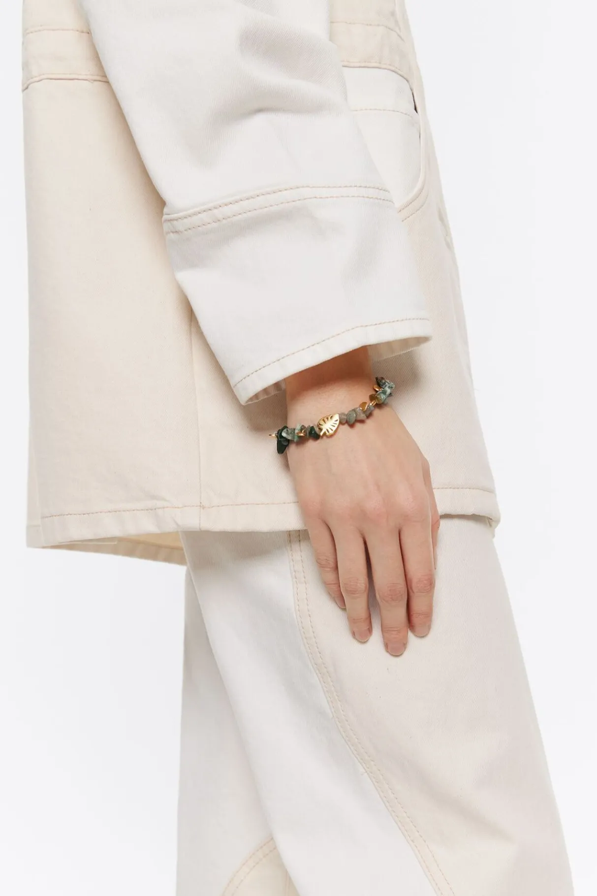 Mujer BIMBA Y LOLA Pulseras<Pulsera Piedras Verdes Y Hoja Dorada