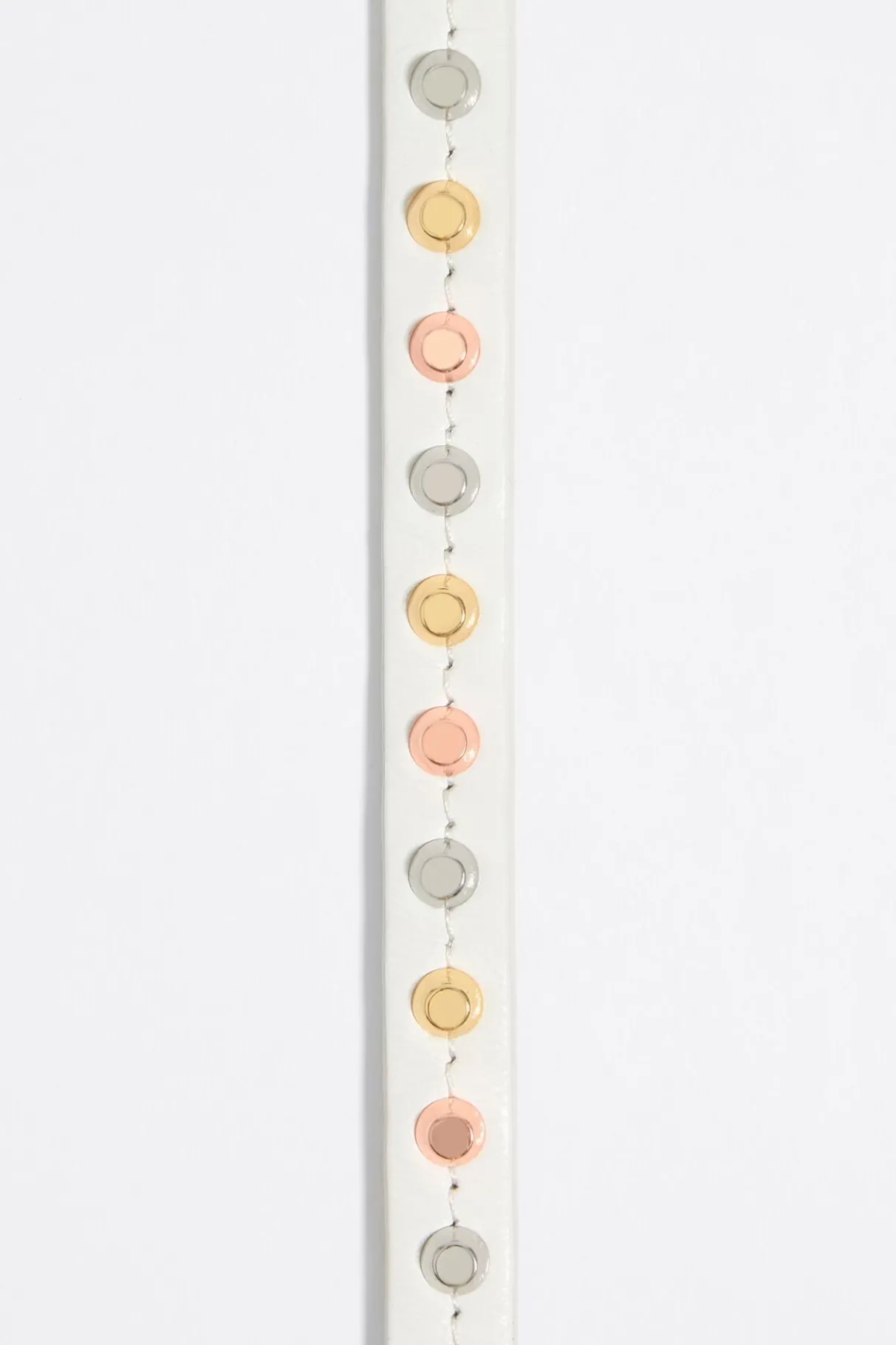 Pulsera De Piel En Color Marfil Con Tachas Doradas. Modelo Con Cierre De Hebilla Ajustable Personalizado Con Logo.
