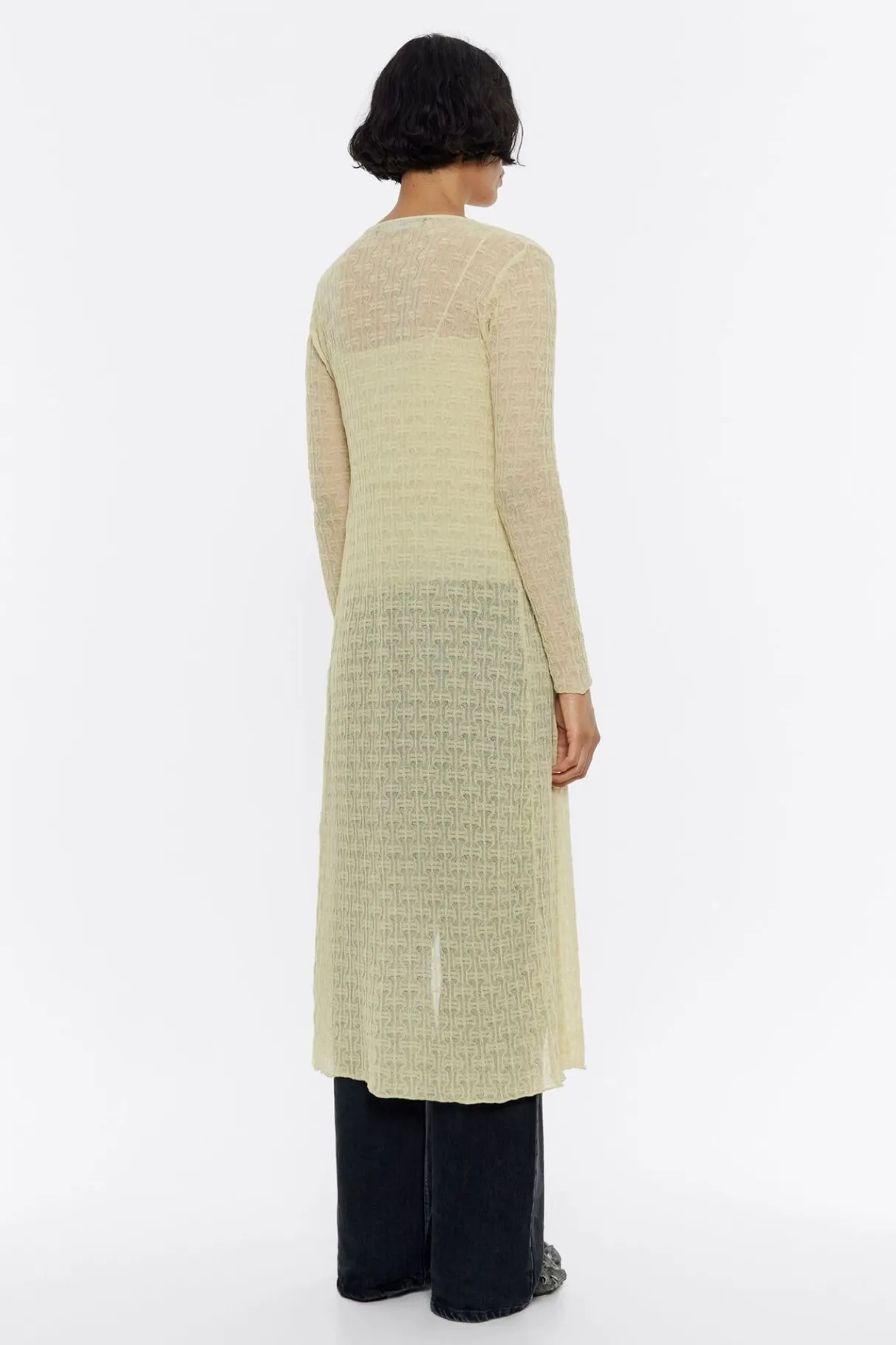 CÁRdigan Ajustada Larga De Punto En Color Lima. Modelo Con Escote Pico, Manga Larga Ajustada Y Cierre Frontal Con Lazos.